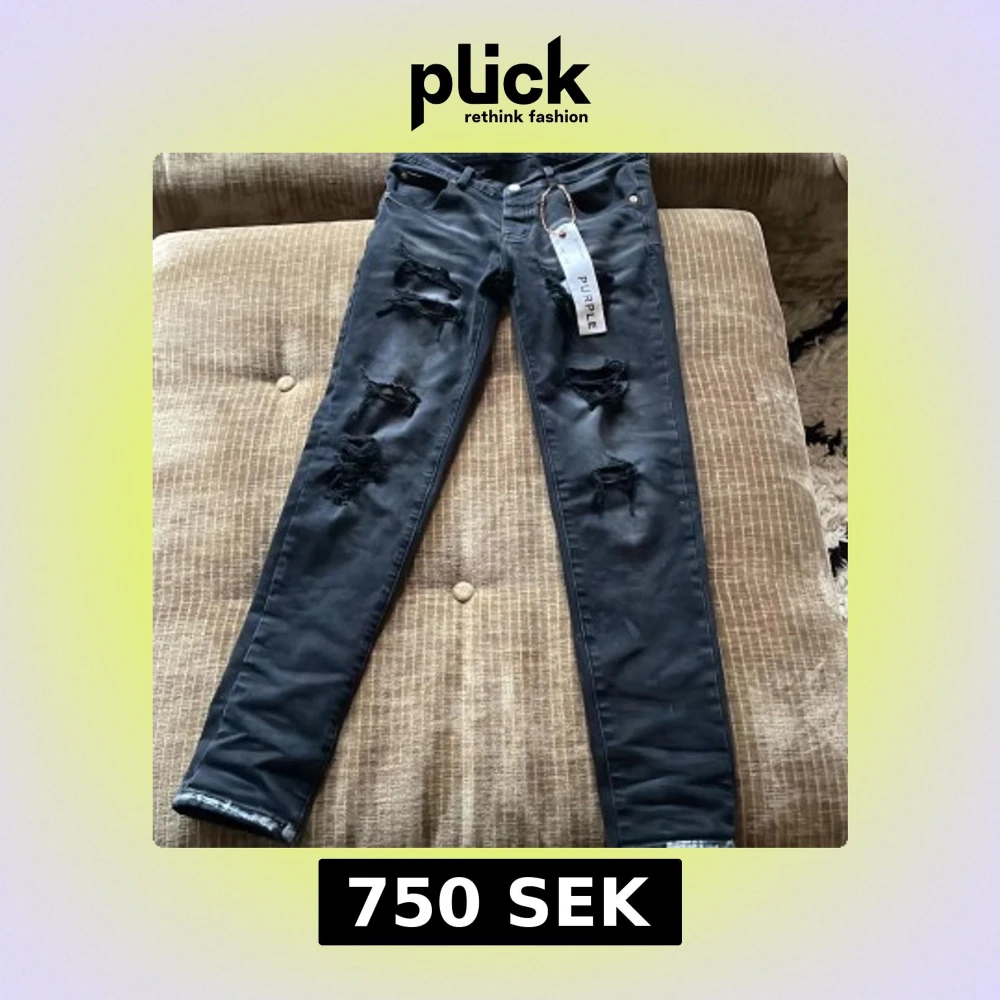 Snygga svarta jeans från Purple med coola slitningar på framsidan. De har en slim passform och är perfekta för en trendig look. Jeansen har klassisk design och knappgylf.