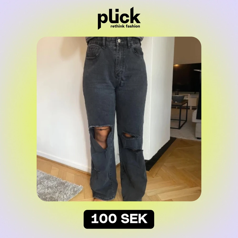 Säljer ett par svarta jeans från Shein i storlek M. De är högmidjade och har en straight passform. Jeansen har coola slitningar på framsidan av benen, vilket ger dem en trendig look. Perfekta för en avslappnad stil!
