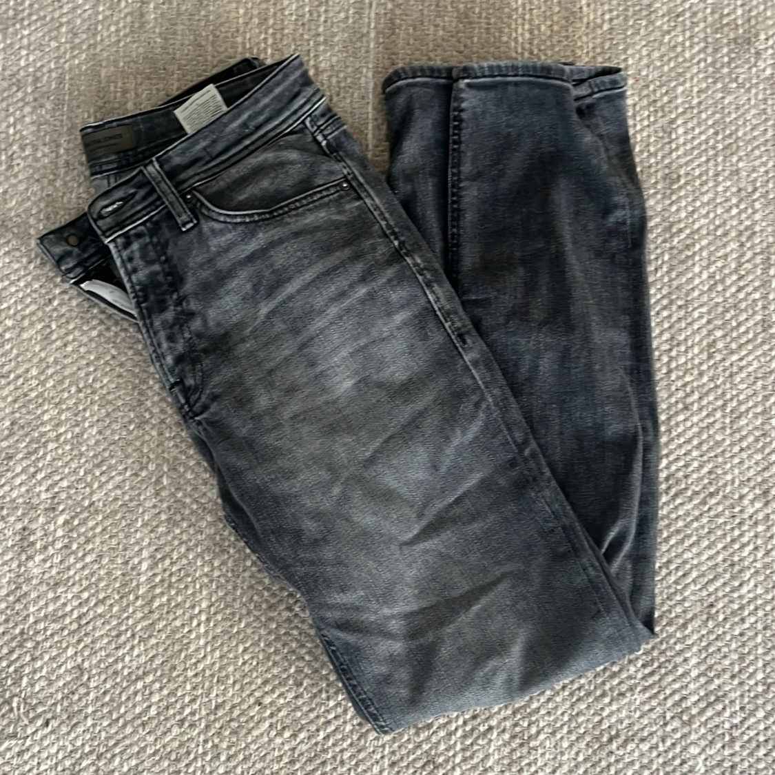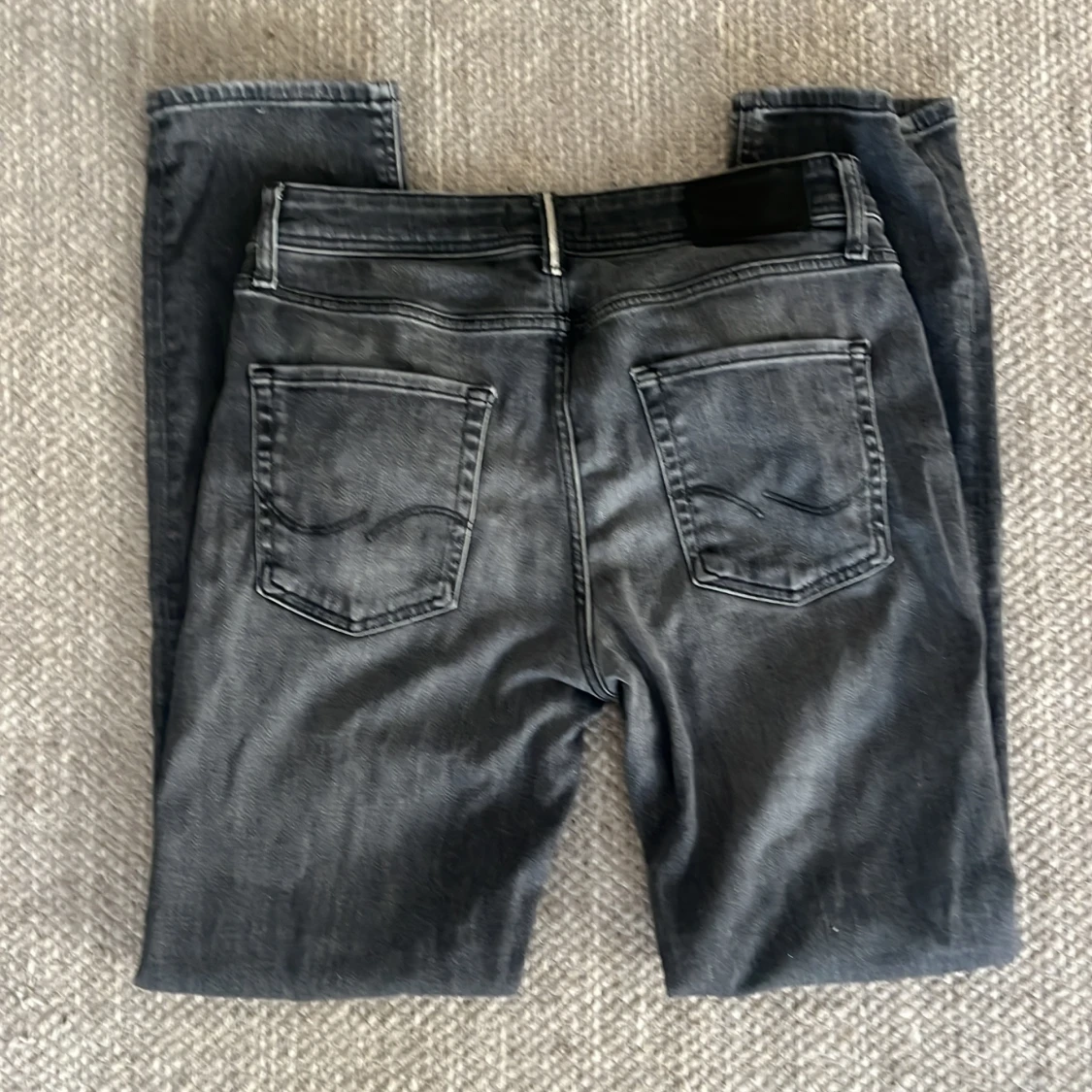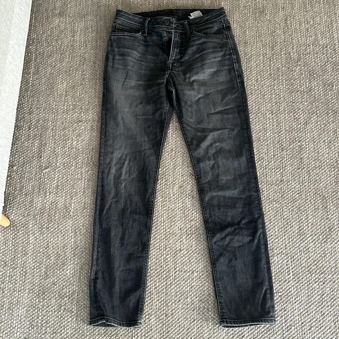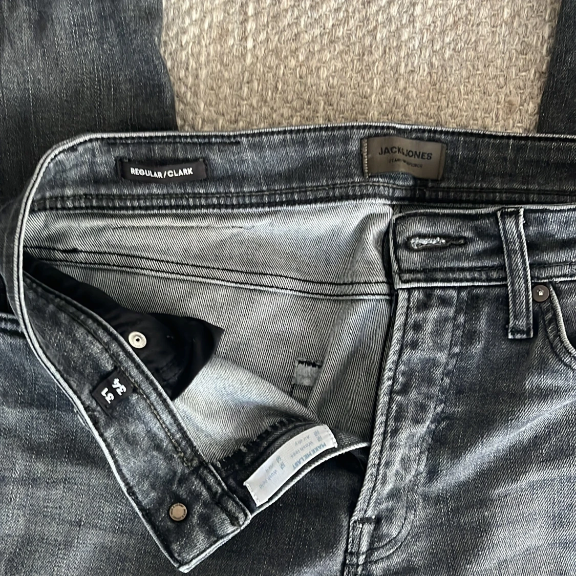 Hej! Säljer nu mina mörkgråa jeans från jack and Jones. Jeansen är i väldigt bra skick och väldigt bekväma. De är regular i modellen (raka/lite Slim). Storlek: 31 W 34 L Hör av er vid frågor!