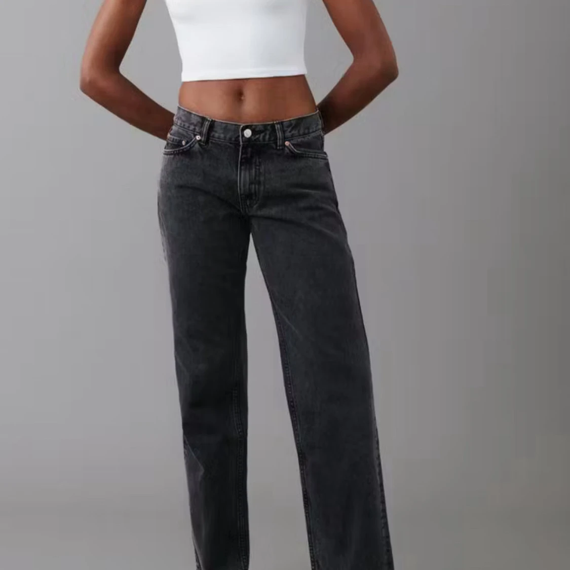 Snygga svarta straight low waist jeans. Från Gina