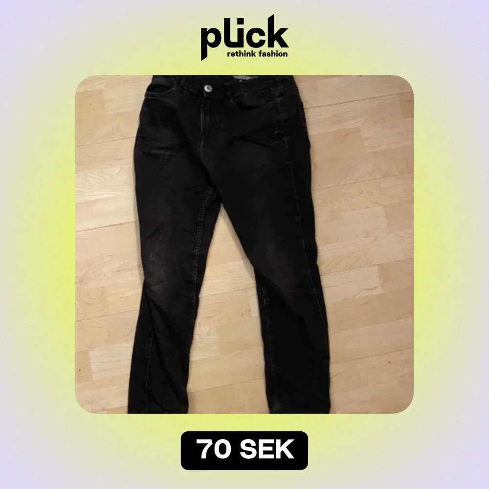 Säljer ett par svarta jeansbyxor i bra skick. De har en klassisk femficksdesign och stängs med en knapp och dragkedja. Perfekta för både vardag och fest!