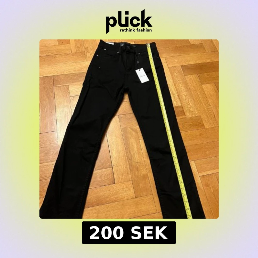 Snygga svarta jeansbyxor med klassisk femficksdesign och knappgylf. Perfekta för en stilren look.