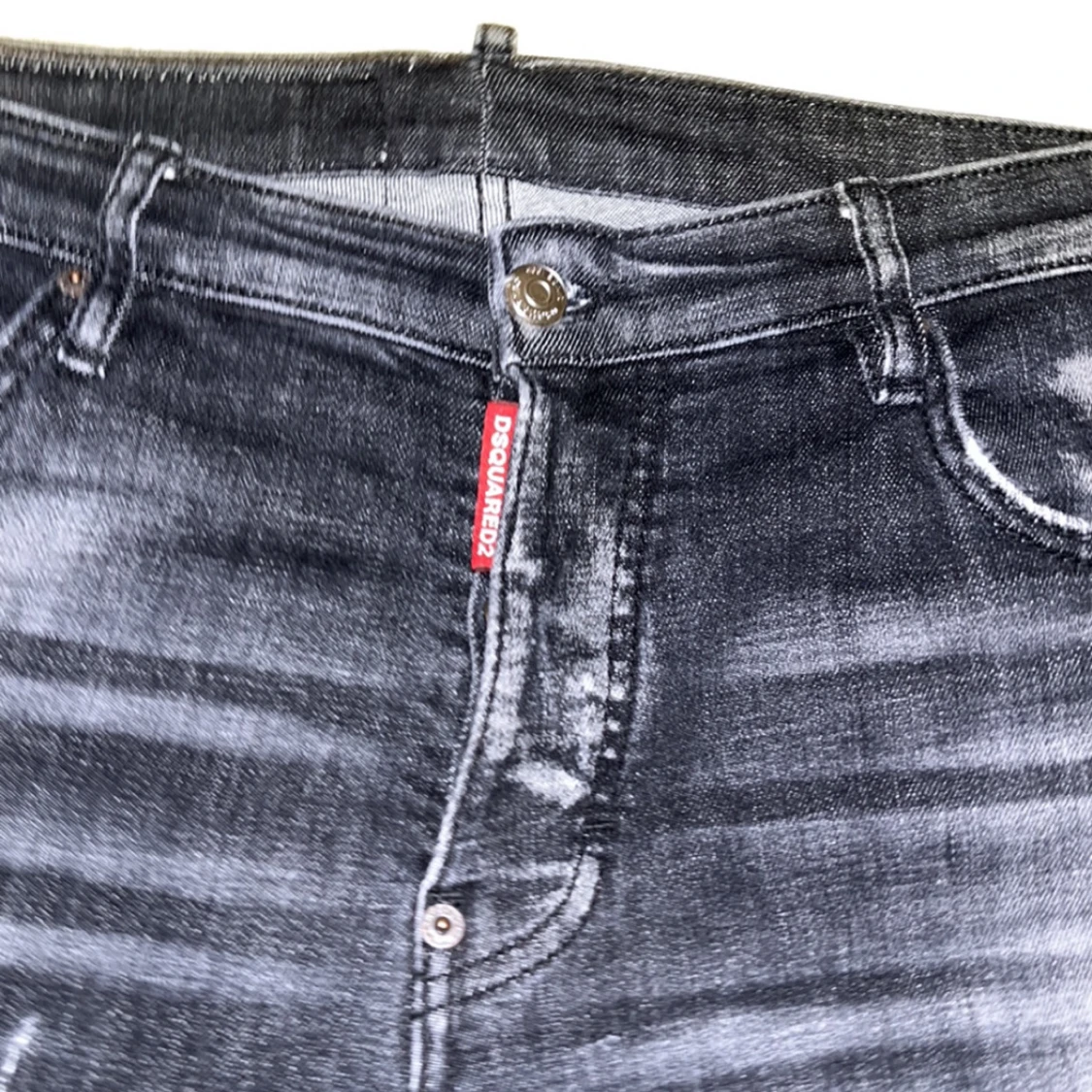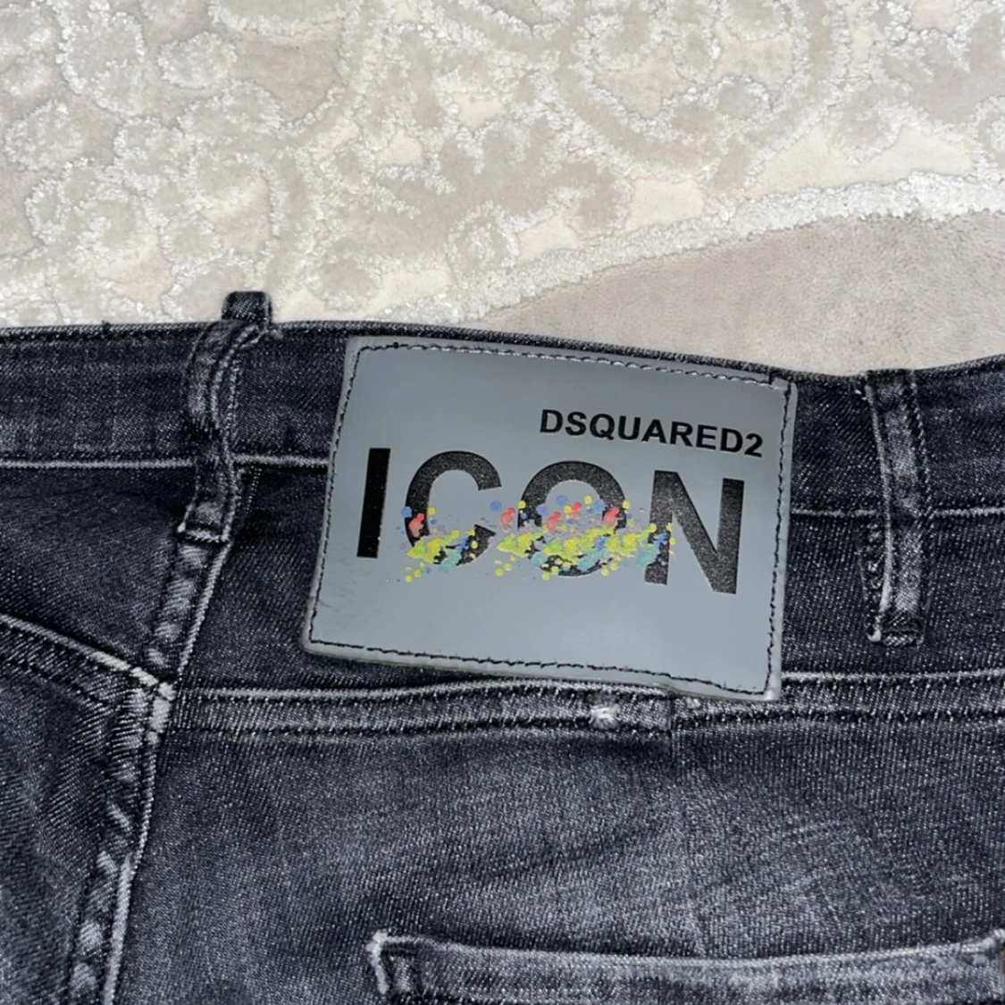 Säljer ett par svarta Dsquared2 ICON jeans med slitningar och färgstänk. Byxorna har fem fickor, knappgylf och en tydlig Dsquared2-logga bak i midjan. (Ni som kan märken ser att detta är en äkta vara)