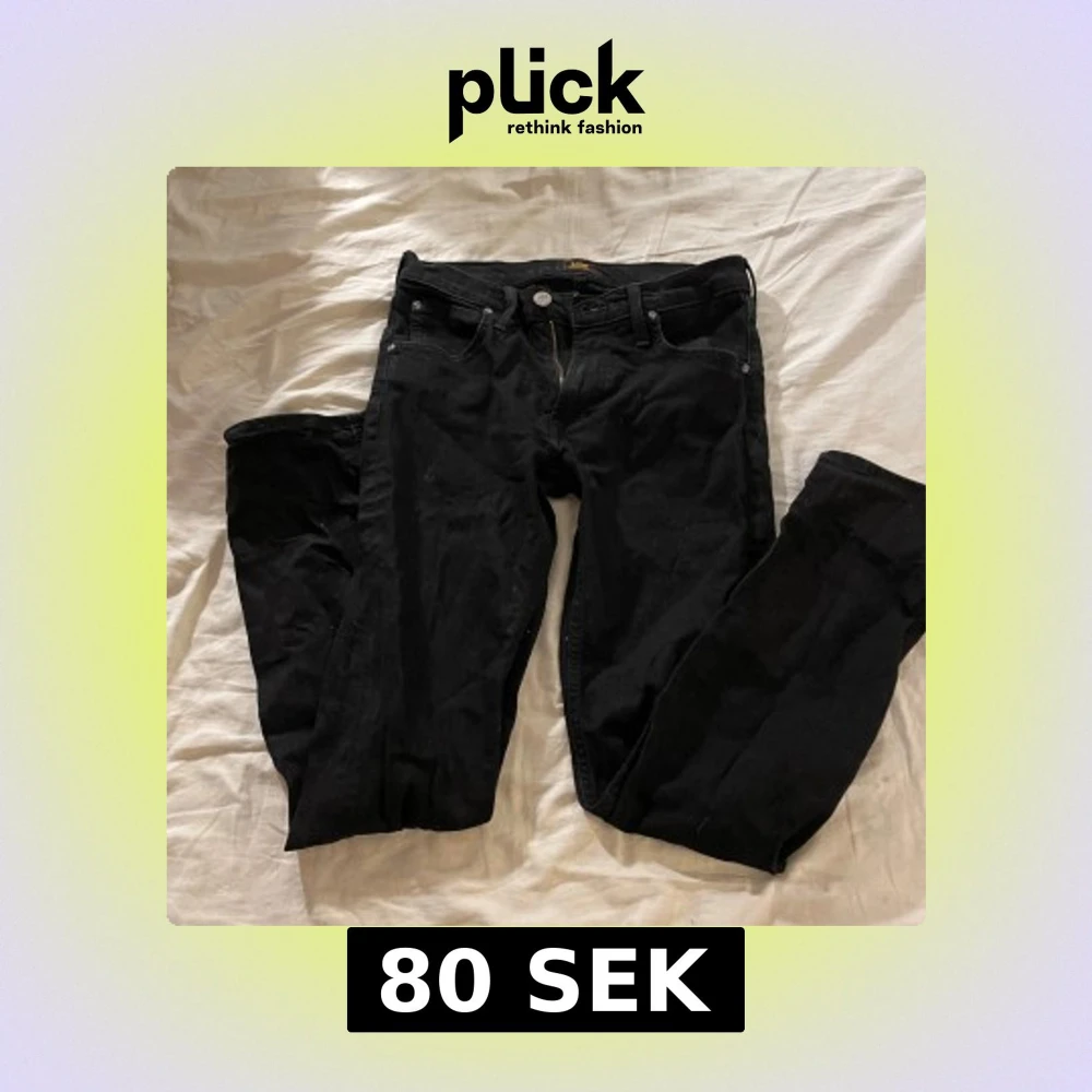 Svarta jeansbyxor från Lee med klassisk femficksdesign och raka ben. Byxorna har knapp och dragkedja framtill samt bälteshällor. Perfekta för en stilren och enkel look.Storlek: 29/32