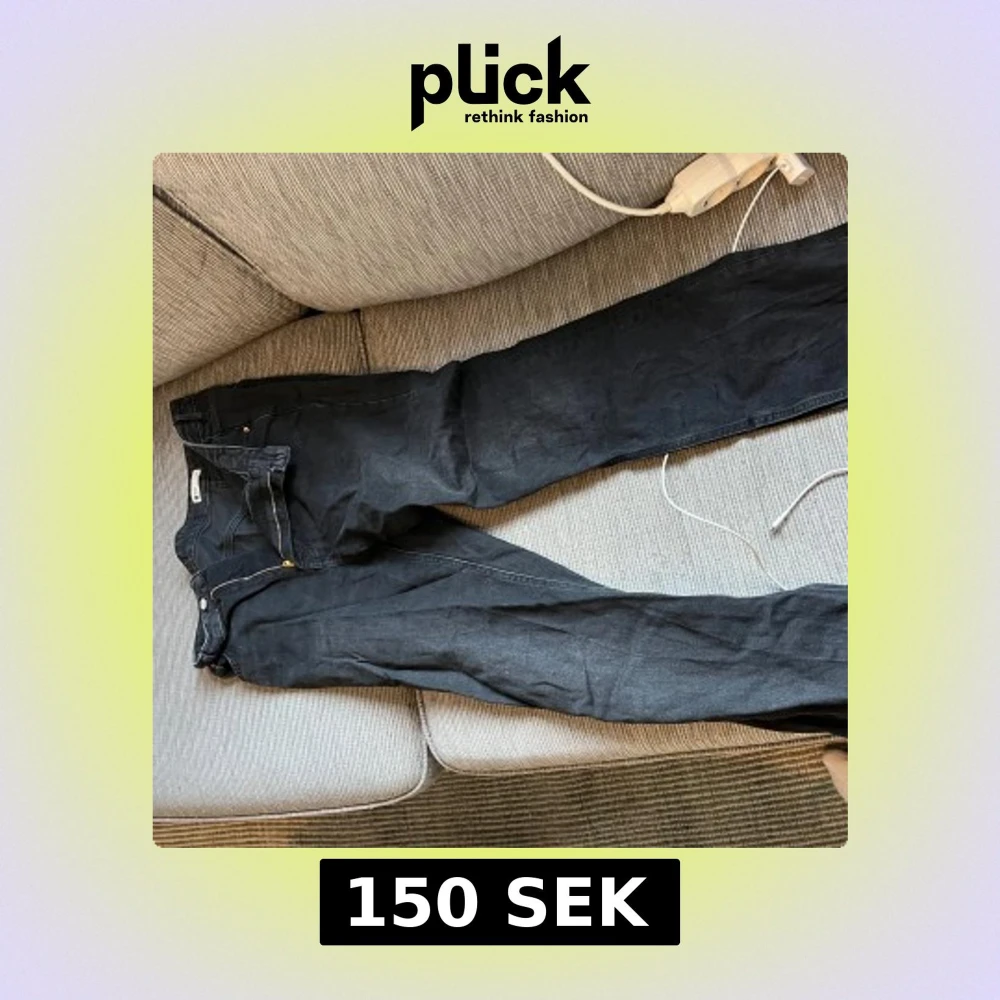 Säljer ett par svarta jeansbyxor med klassisk rak passform. Byxorna har dragkedja och knapp framtill samt fem fickor. Perfekta för dig som gillar en enkel och stilren look. Gina