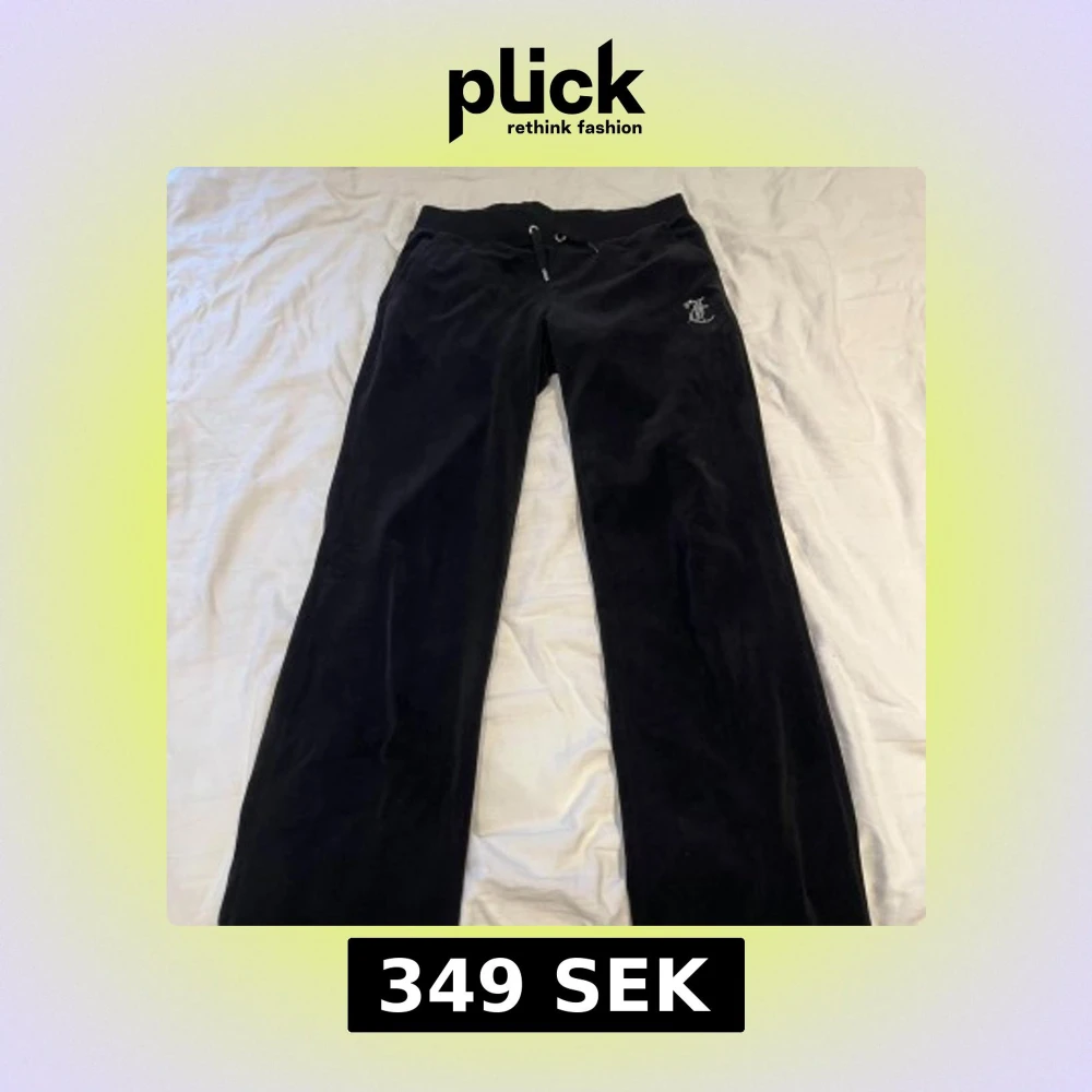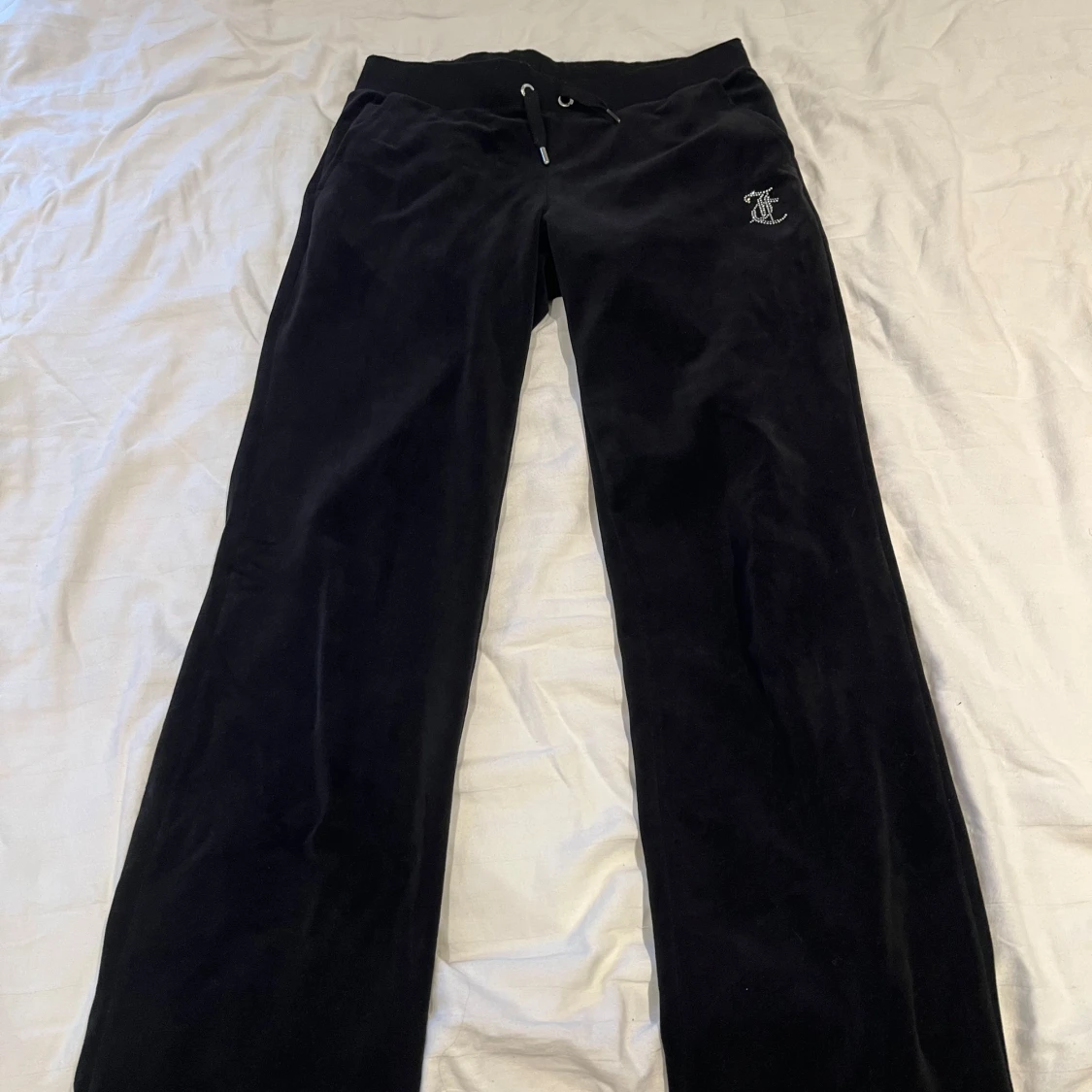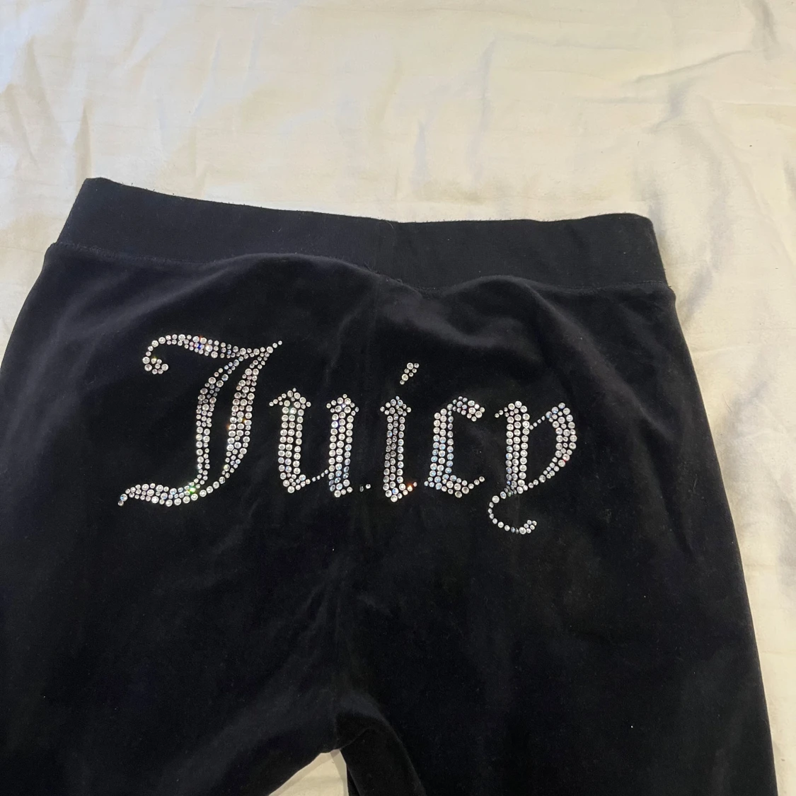 Svarta juicy byxor med diamant-logga där bak. En utav snörenas kant har åkt av men kan skickas med om man vill, därav priset 💞 annars är byxorna som nya