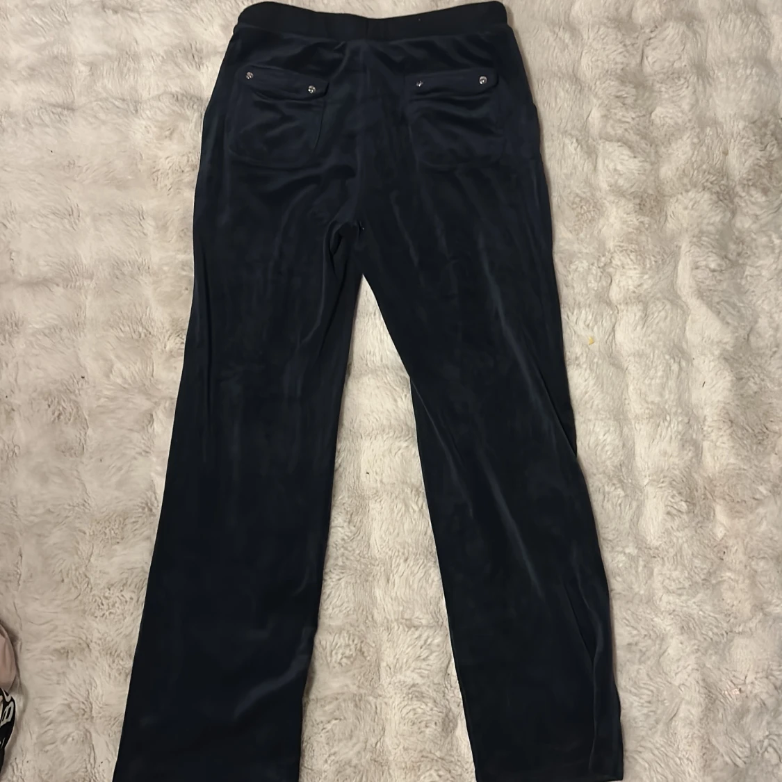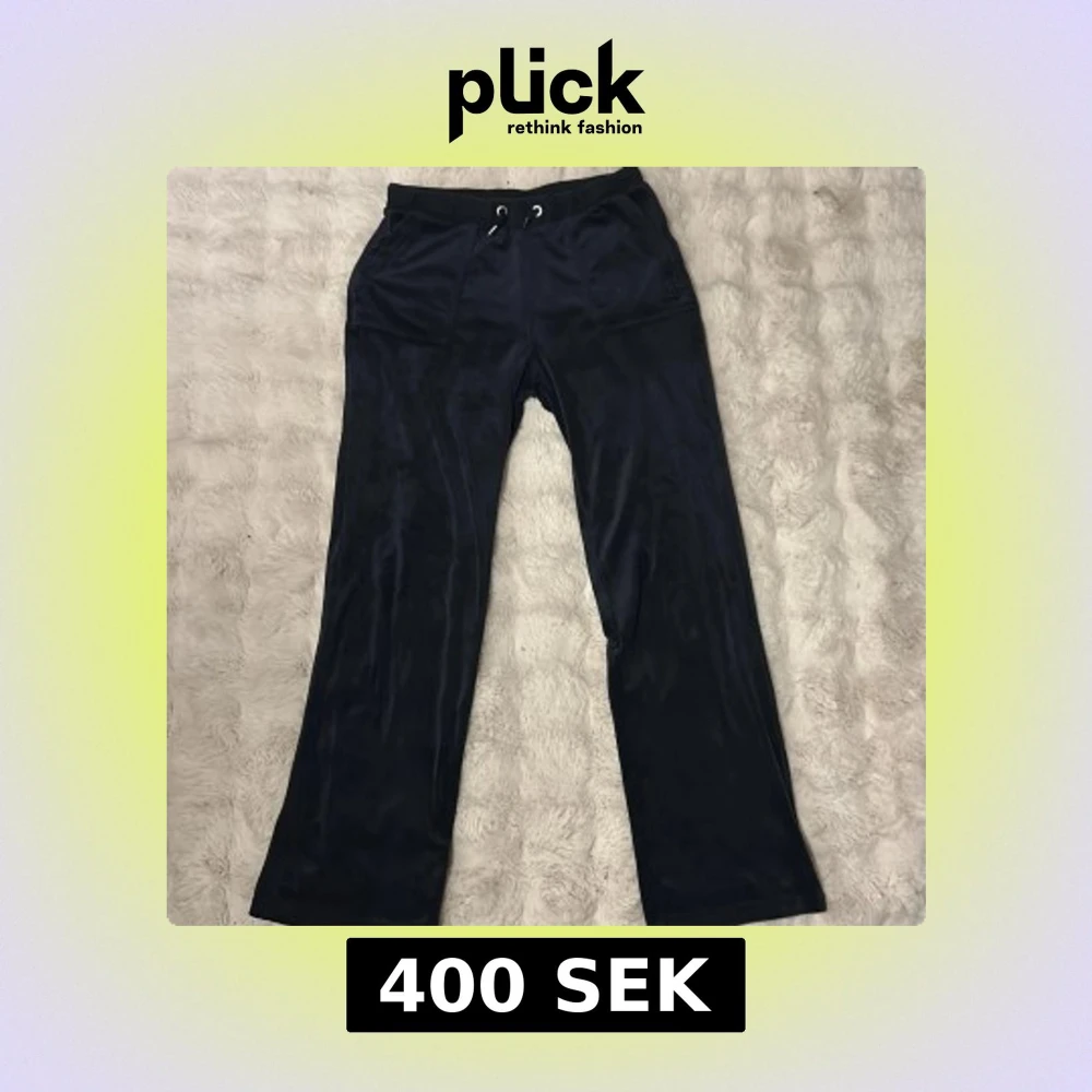 Svarta mjukisbyxor från Juicy Couture i mjuk velour med broderad JC-logga och guldfärgade knappar bak. Köpt på Pondus. Byxorna har snörning i midjan, raka ben och praktiska fickor fram och bak. Perfekta för en chill och trendig look. Stl L