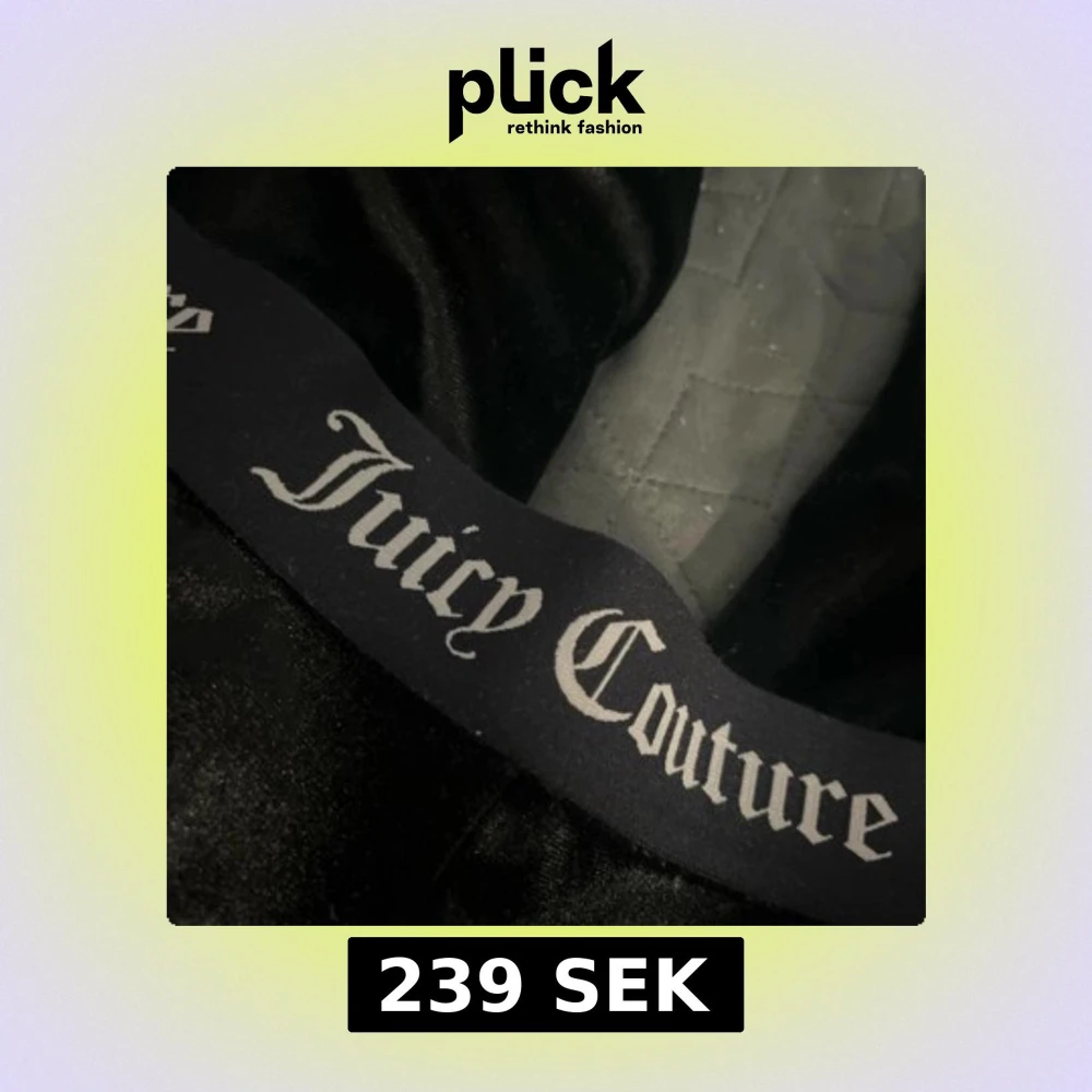 Svarta mjukisbyxor från Juicy Couture i glansigt material med bred resår i midjan där Juicy Couture-loggan syns tydligt. Byxorna har en loose passform och är tillverkade i 95% polyester och 5% elastan för extra stretch och komfort.
