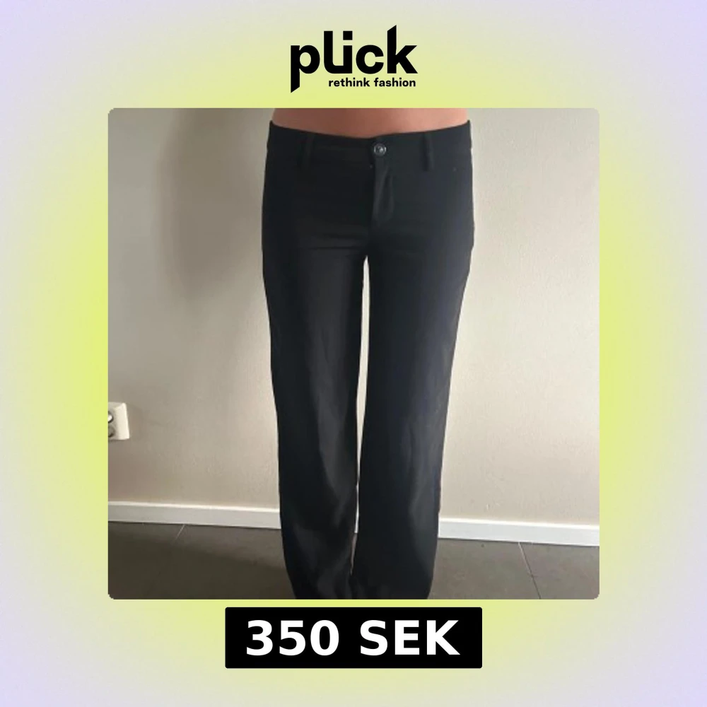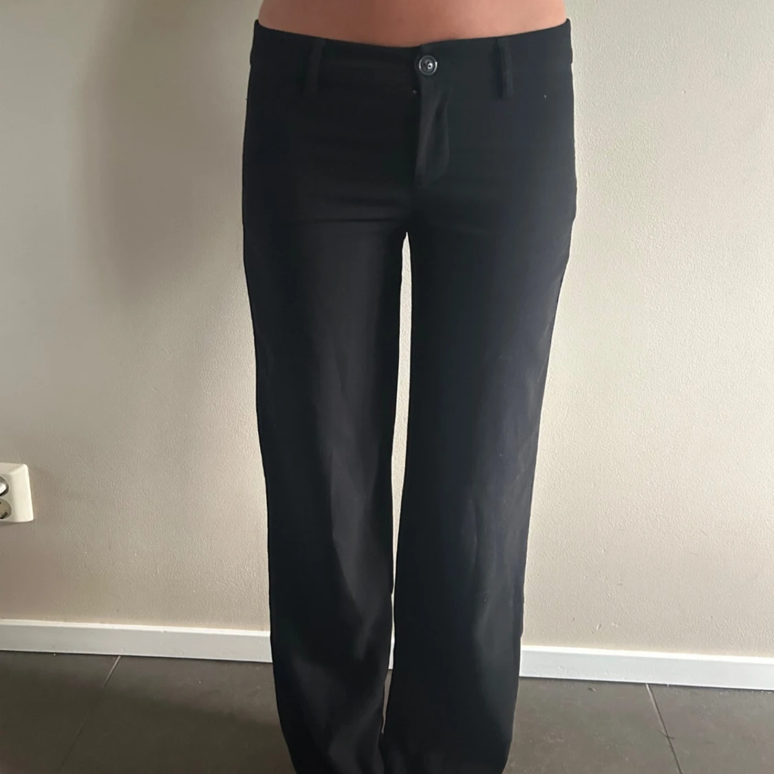 Säljer ett par klassiska svarta kostymbyxor med normal passform och raka ben. Perfekta till en stilren look. Säljer då dom inte kommer till användning!💕