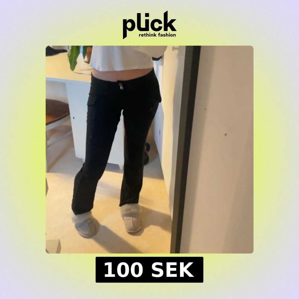 Snygga svarta kostym byxor i en tight passform. Byxorna har låg midja med två knappar fram. De är tillverkade i ett mjukt och bekvämt material. Jag säljer dom för att dom har blivigt för korta för mig som har storlek 36 och är 1,69, dom har lite noppor men det syns knappt, kontakta för mer information 🥰