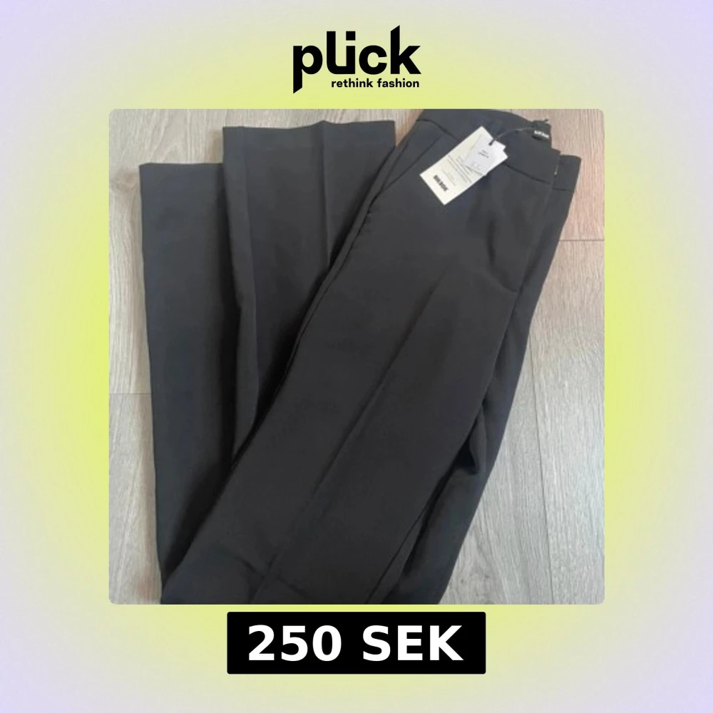 Snygga svarta kostymbyxor med hög midja och rak passform. De är helt nya och oanvända. Perfekta för en stilren look. Byxorna har en klassisk design med dragkedja och knapp framtill.