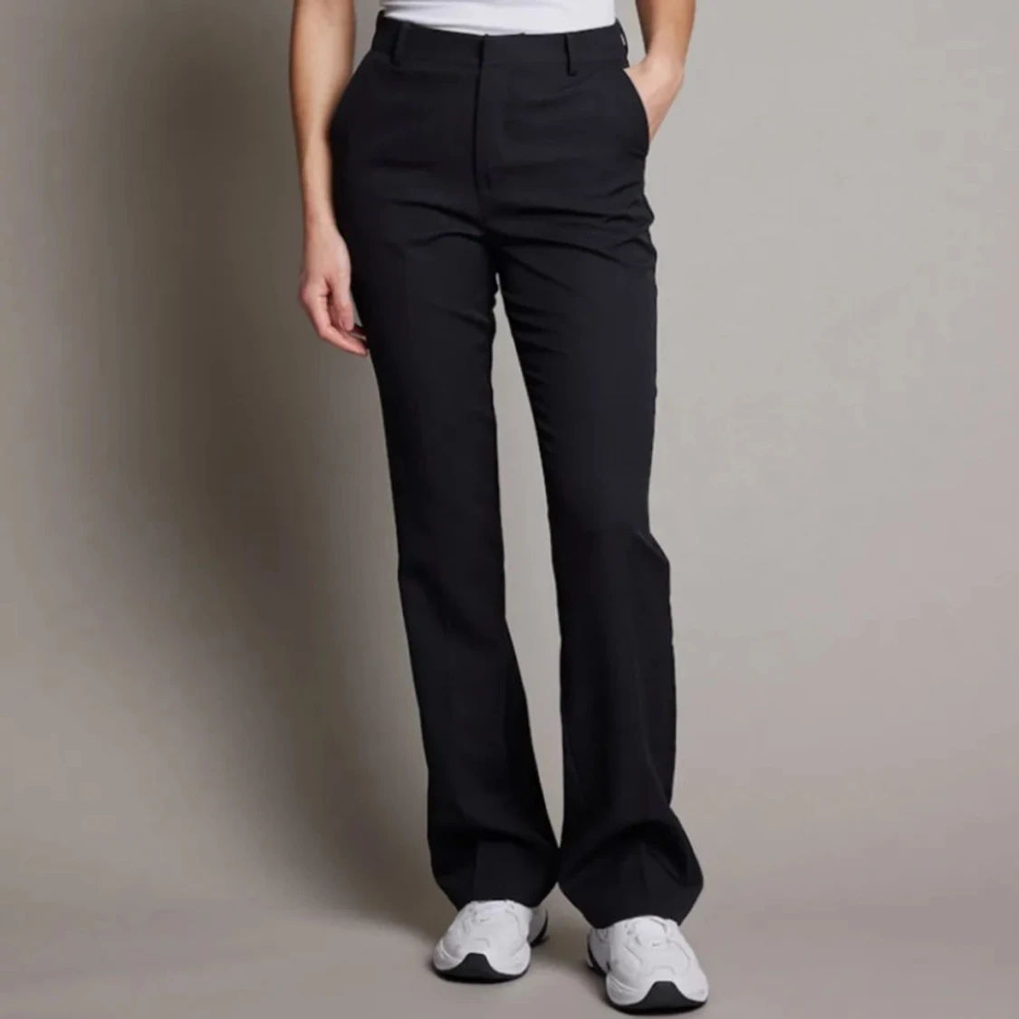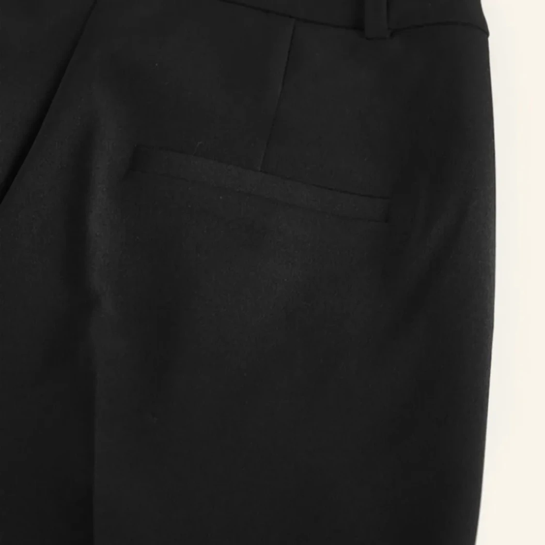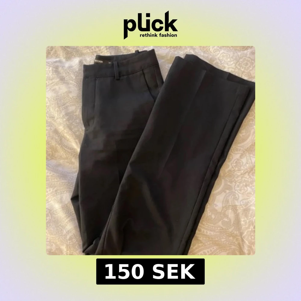 Snygga svarta kostymbyxor med hög midja och bootcut-stil. Perfekta för en stilren look. Byxorna har diskreta fickor och en klassisk design. De är från bikbok i strl 36 i modellen Vilma.
