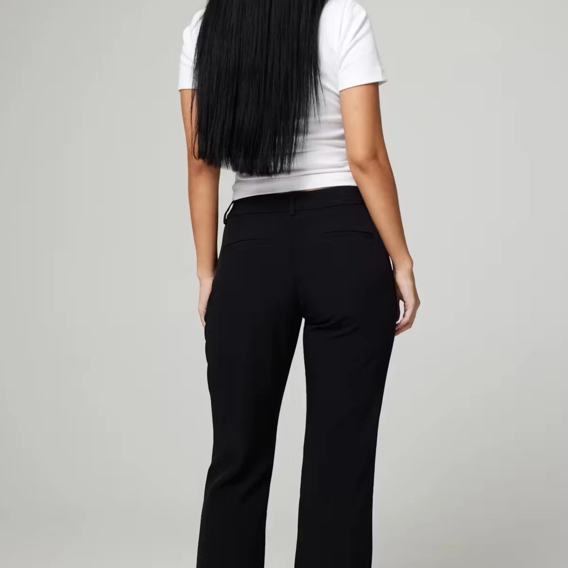 Snygga svarta bootcut kostymbyxor från Bikbok. Är köpta i petite passformen vilket gör dem lite kortare, passar därför perfekt för mig som är 162🥰