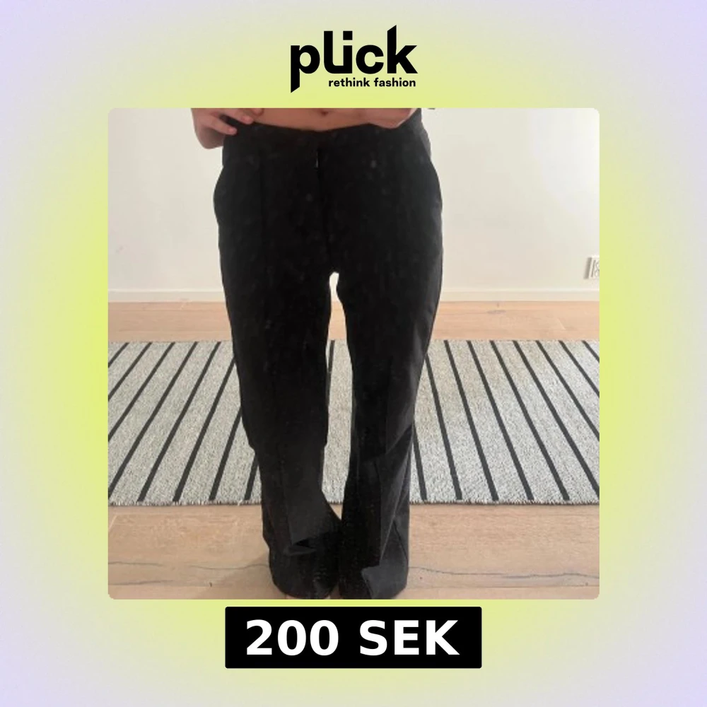 Snygga svarta kostymbyxor med en bootcut stil. Byxorna har hög midja och klassisk dragkedja framtill. Skit snygga och passar så bra till allt, plus man ser alltid lyxig ut när man har kostymbyxor!!