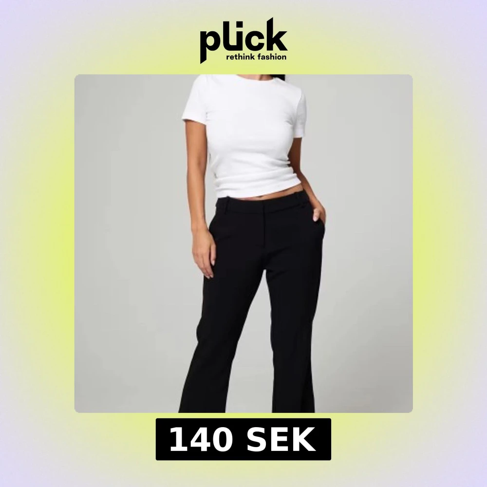 Snygga svarta bootcut kostymbyxor från Bikbok. Är köpta i petite passformen vilket gör dem lite kortare, passar därför perfekt för mig som är 162🥰