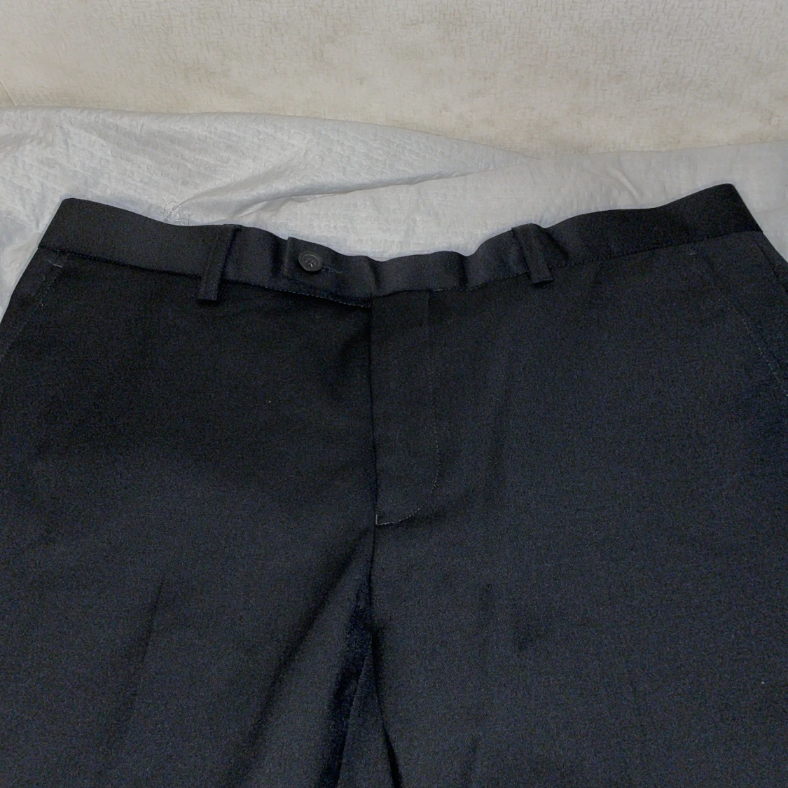 Svarta kostymbyxor från Dressmann i slim fit-modell. Byxorna har bälteshällor, knapp och dragkedja fram. Materialet är en mix av polyester, ull och elastan för en skön och följsam känsla. Perfekta för en clean och stilren look.