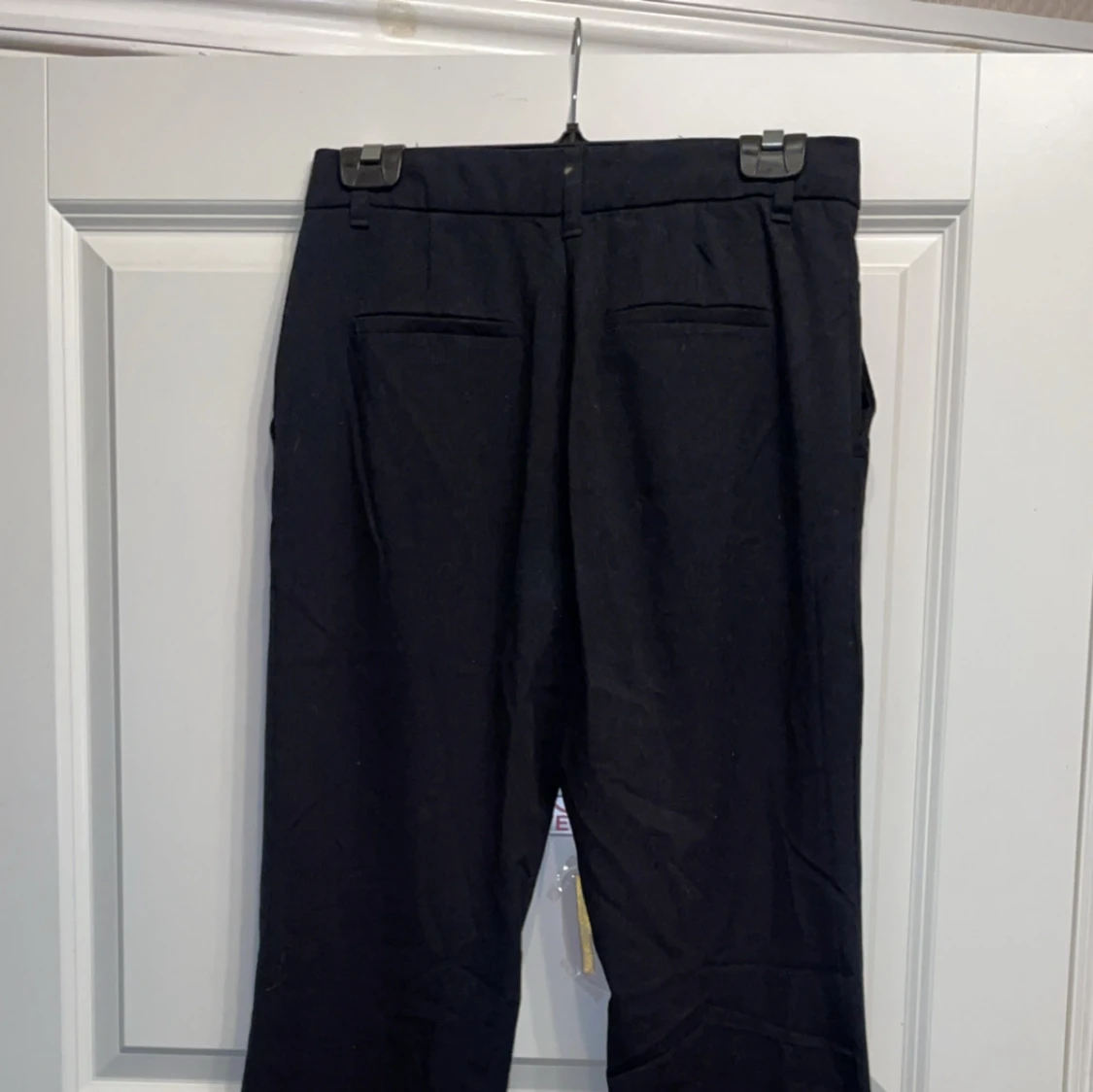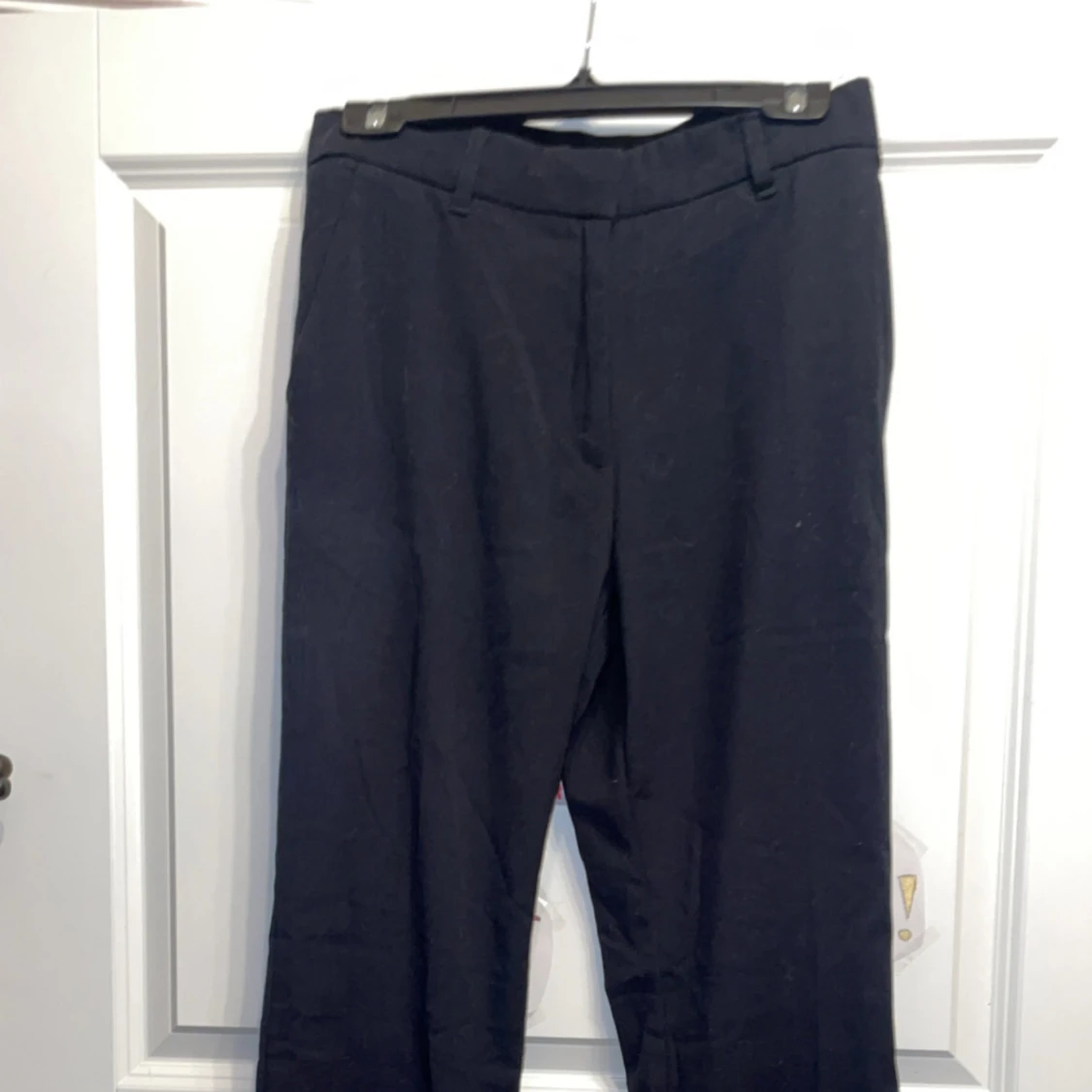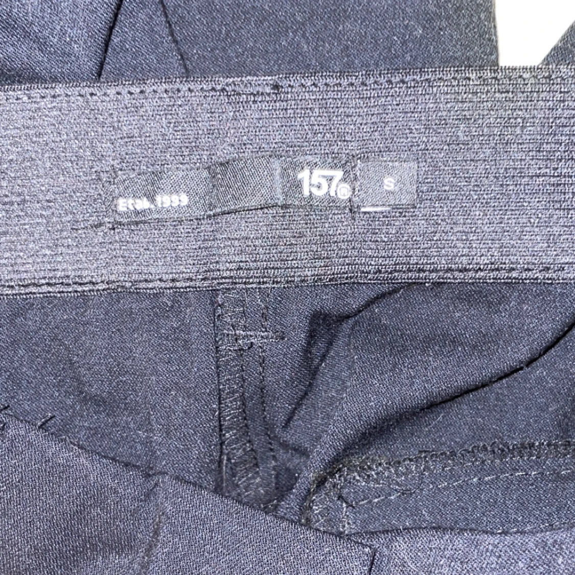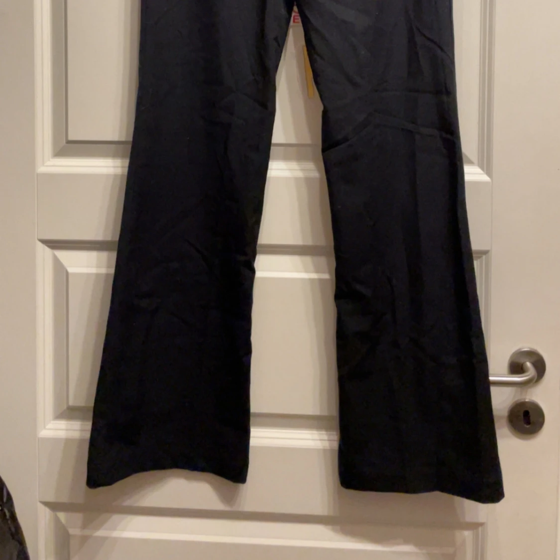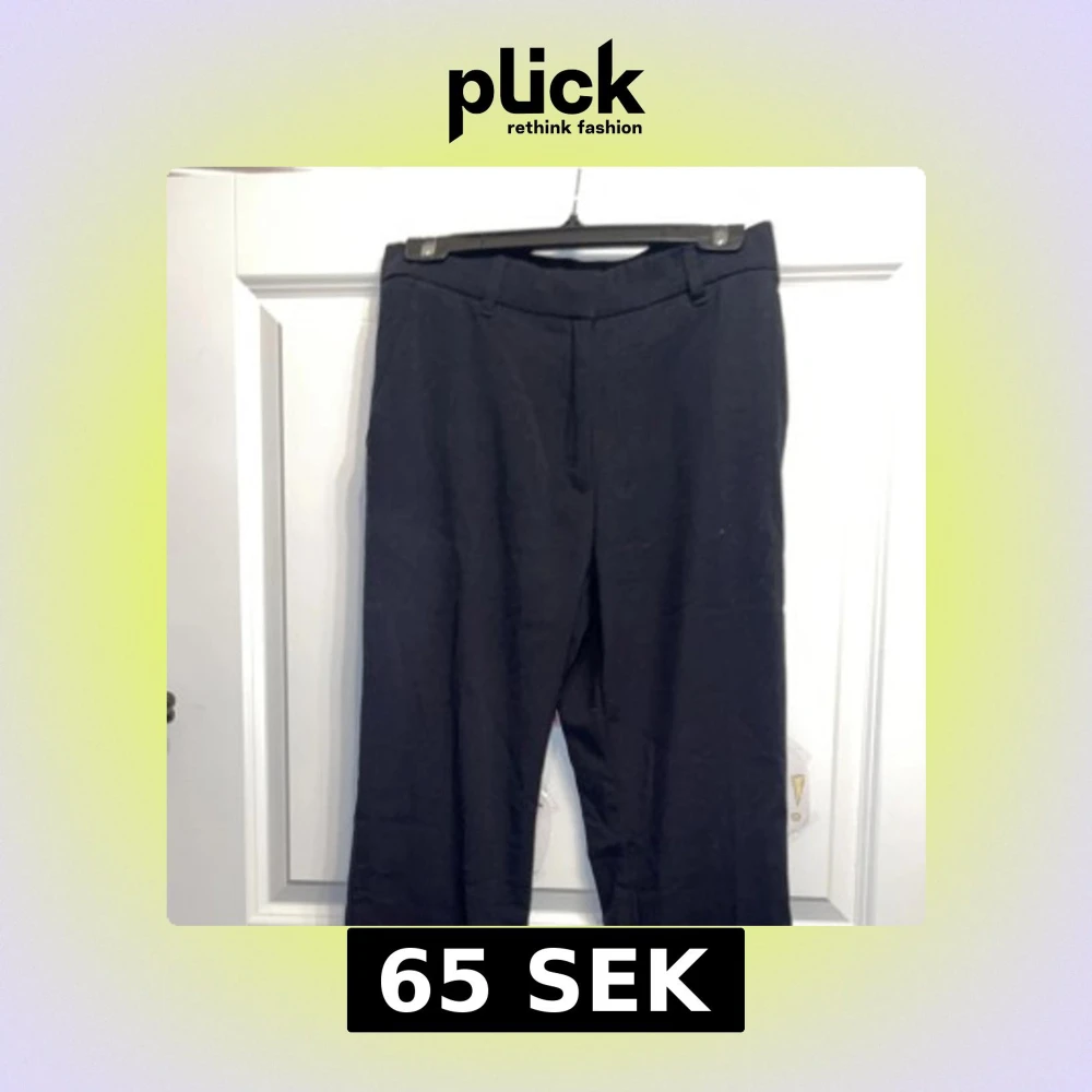 Svarta kostymbyxor från 157 med klassisk passform och vida ben. Det saknas en liten grej när man knäpper dom men de finns en kvar så det går o knäppa, men det syns inte när dom sitter på. Det ser ut som att dom är lite bootcut där nere vid benen.💞obs har aldrig använd dom, ända skavanken är 1 av 2 fästerna som gått av!
