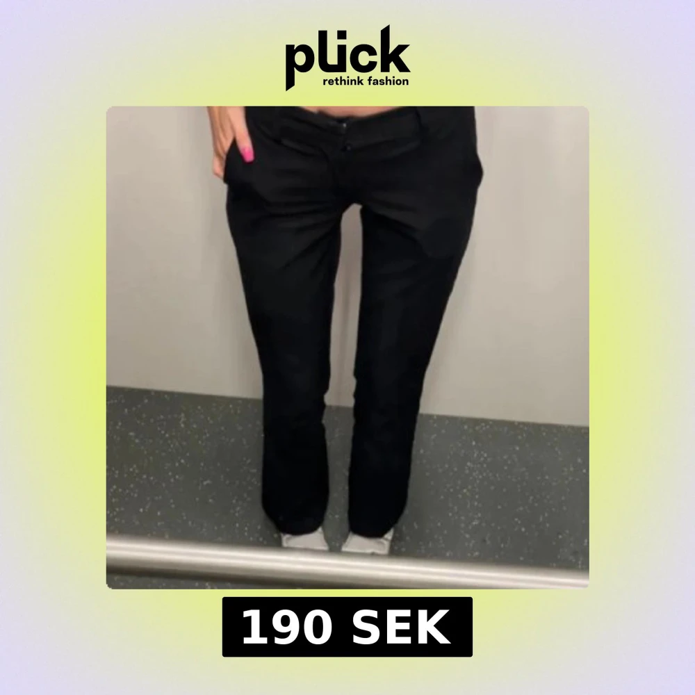 Svarta kostymbyxor från Bik Bok i klassisk rak modell. Stl 34. Byxorna har hällor för bälte, dragkedja och knapp framtill samt diskreta fickor. Snygg passform med lite vidare ben och stilren look. Perfekta till en trendig outfit. Första bild lånad pga att de inte passar mig även därför som jag säljer dem. Köpa här på plick!