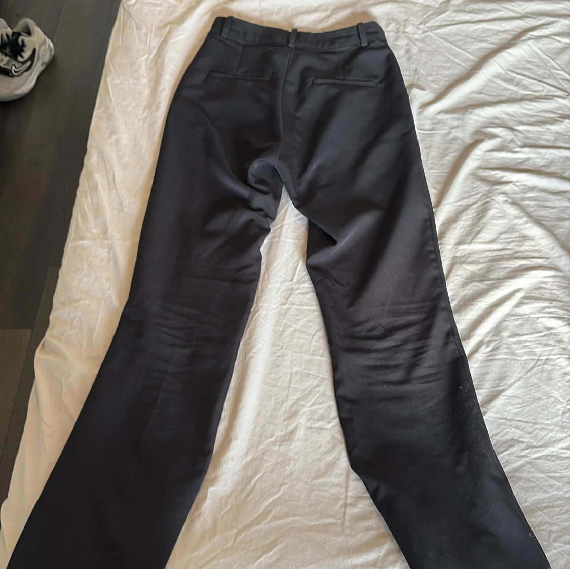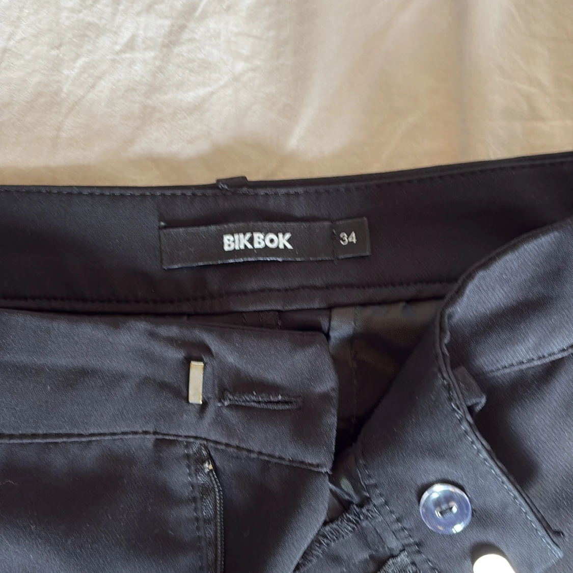Svarta kostymbyxor från Bik Bok i klassisk modell med raka ben och hällor för bälte. Byxorna har diskreta fickor bak och stängs med dragkedja och hake. Snygg passform och stilren look, perfekta till en dressad outfit.
