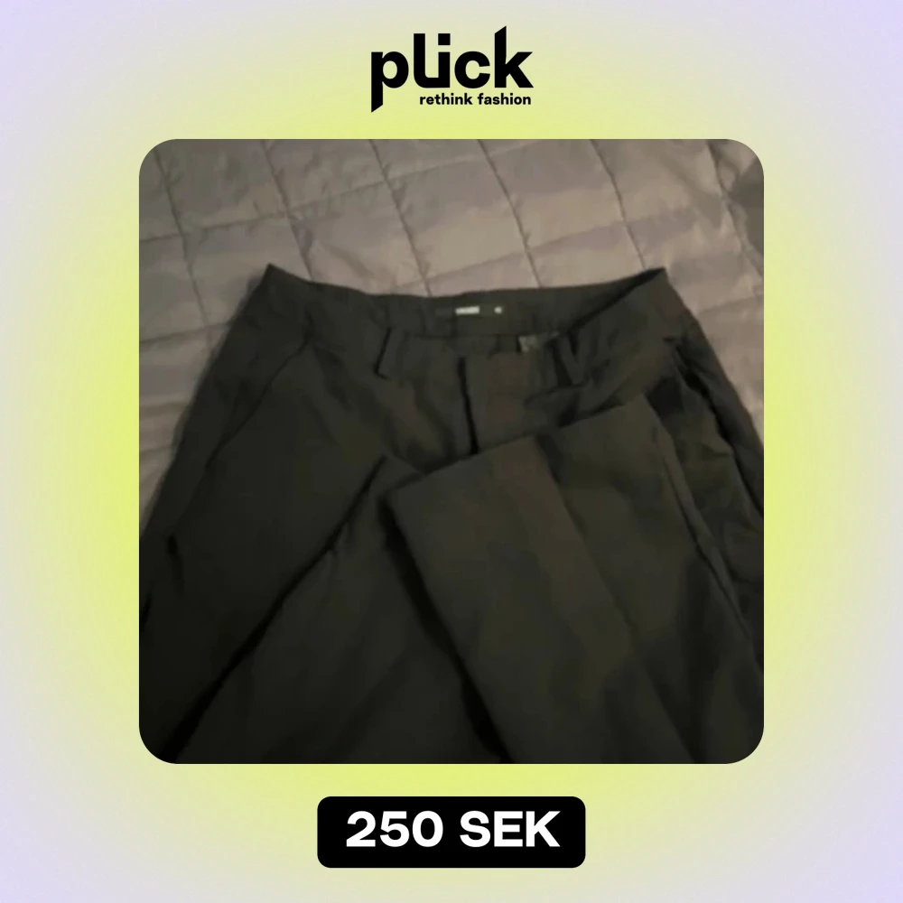 Säljer ett par stilrena svarta kostymbyxor från Bik Bok. De är perfekta för både jobb och festliga tillfällen. Byxorna har en klassisk design med knappar och dragkedja framtill. De är i storlek 40 men är små i passformen så skulle säga att det är 38.