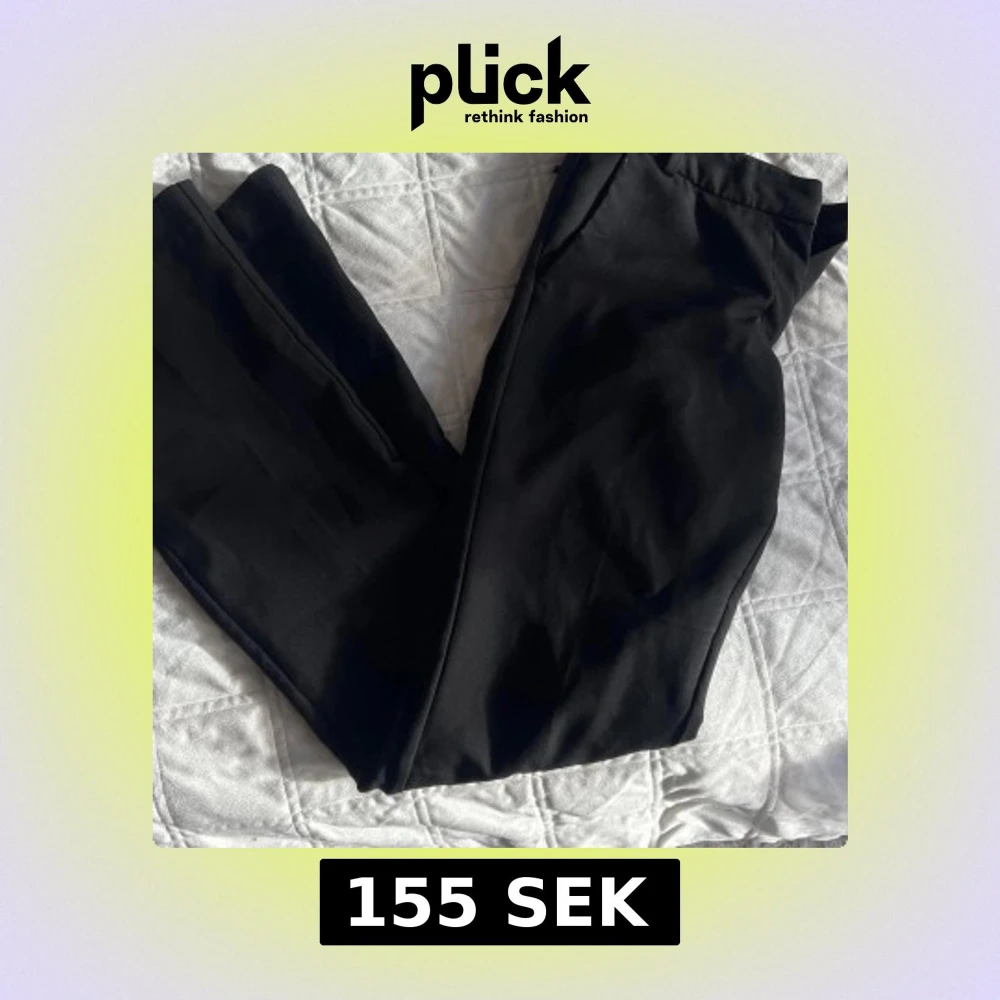 Svarta kostymbyxor från Bik Bok i klassisk rak modell med dragkedja och knapp framtill. Byxorna har en stilren look och är tillverkade i ett mjukt tyg som känns skönt mot huden. Perfekt för dig som gillar en clean och enkel stil.