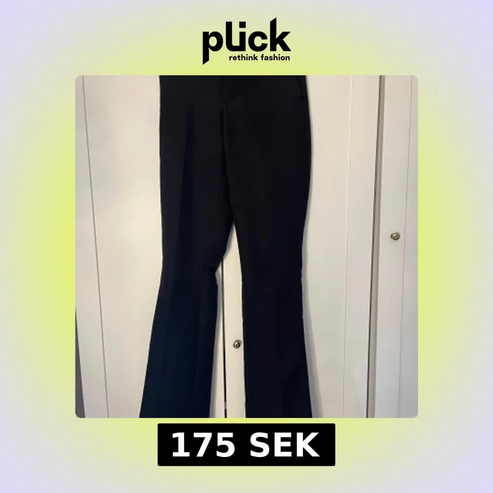 Snygga svarta kostymbyxor från BikBok. Byxorna är bootcut och ganska högmidjade. Jag har sprättat upp byxorna längst ner! Skriv privat ifall ni vill veta något mer eller ha fler bilder. Kan mötas upp i Varberg.