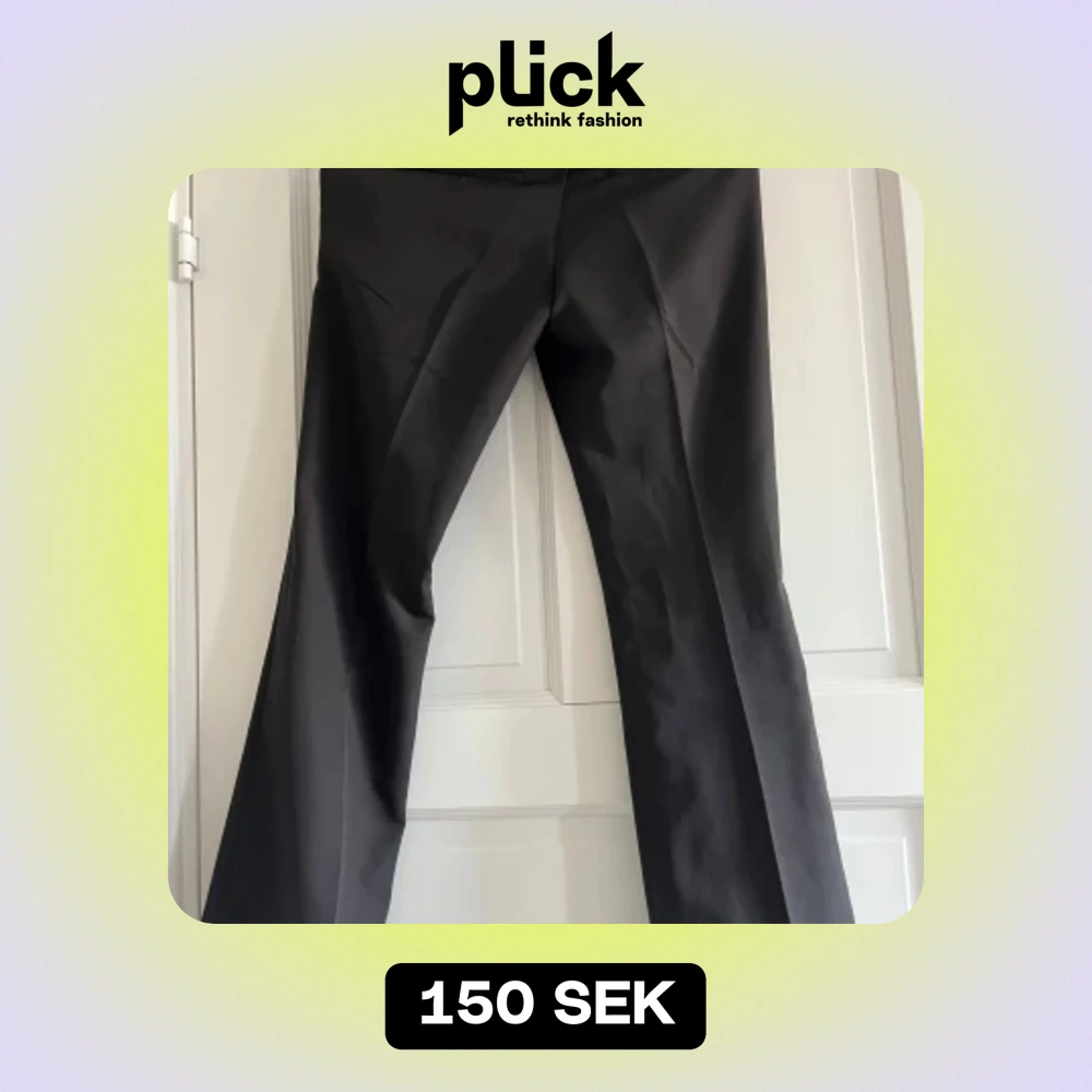 Säljer ett par svarta lågmidjade kostymbyxor från BikBok. De är bootcut. Köpta för 499kr och är i topp sick💕