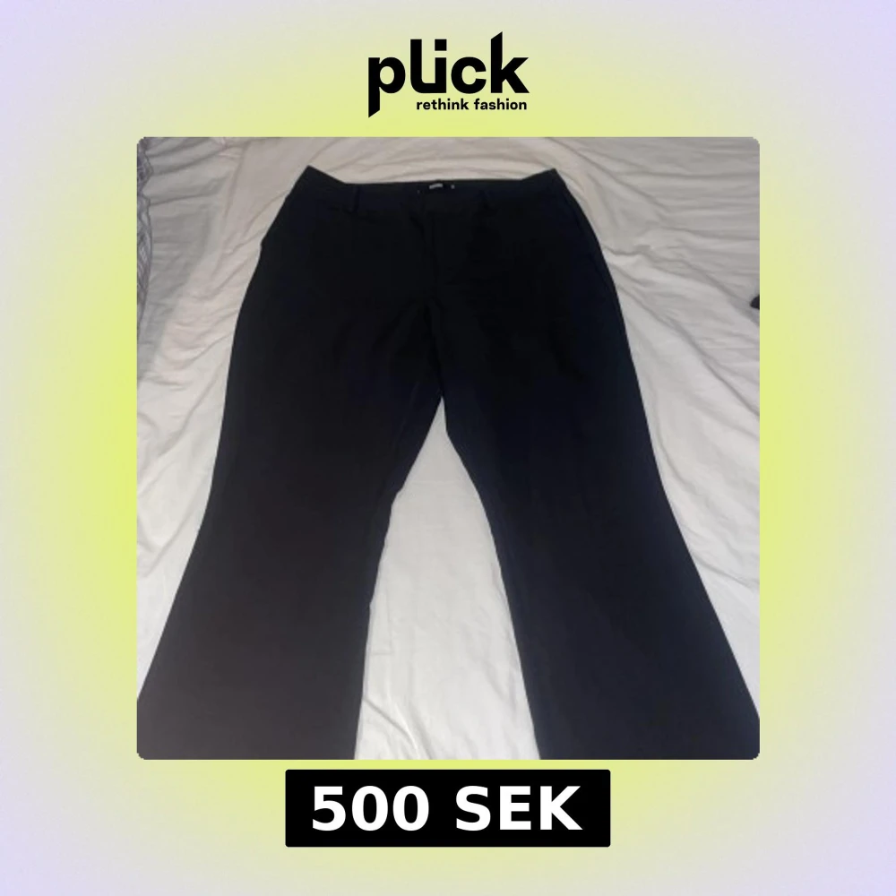 Snygga svarta kostymbyxor från BikBok i storlek 46. Byxorna har en klassisk design med rak passform och är perfekta för en stilren look. De är tillverkade i ett bekvämt material som ger en elegant känsla. Jag är 171 cm och byxorna går hela vägen ner till o med under mina fötter