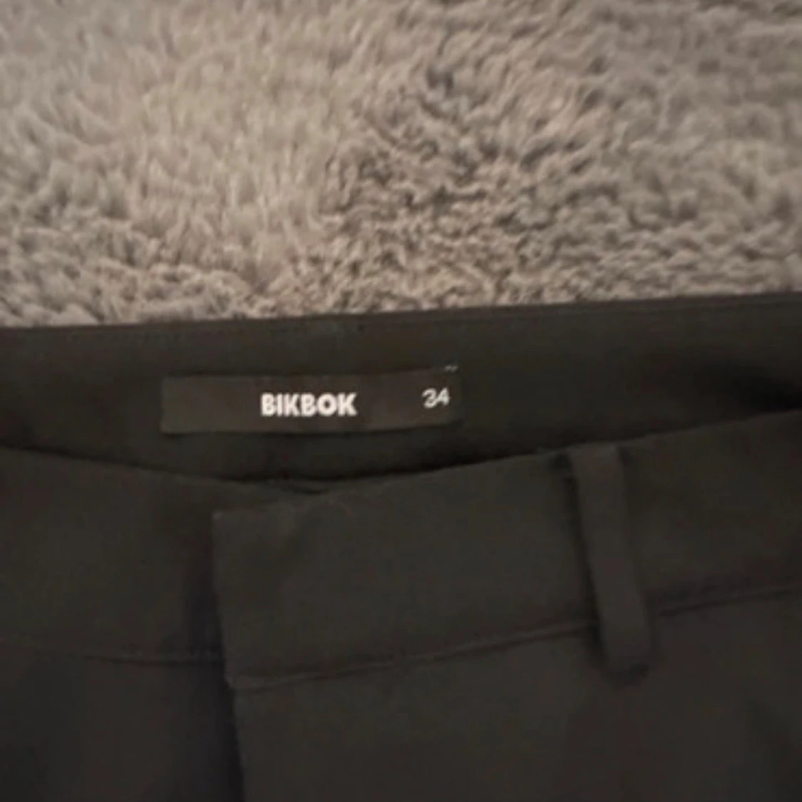Snygga svarta kostymbyxor från BikBok i storlek 34. Byxorna har en klassisk design med raka ben och en stilren look. Perfekta för en chic och professionell stil. Midwaist