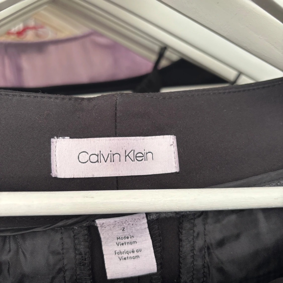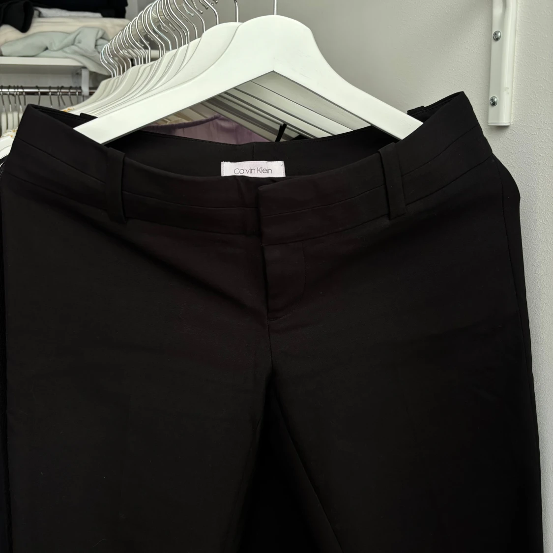Snygga svarta kostymbyxor från Calvin Klein med klassisk passform och hällor för bälte. Perfekta för en stilren look och passar till många olika tillfällen.