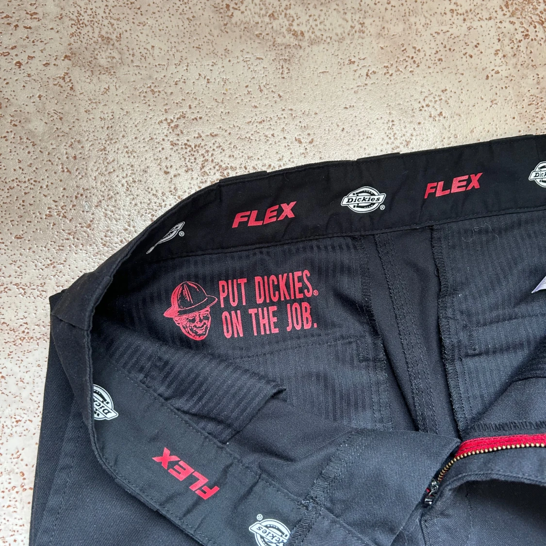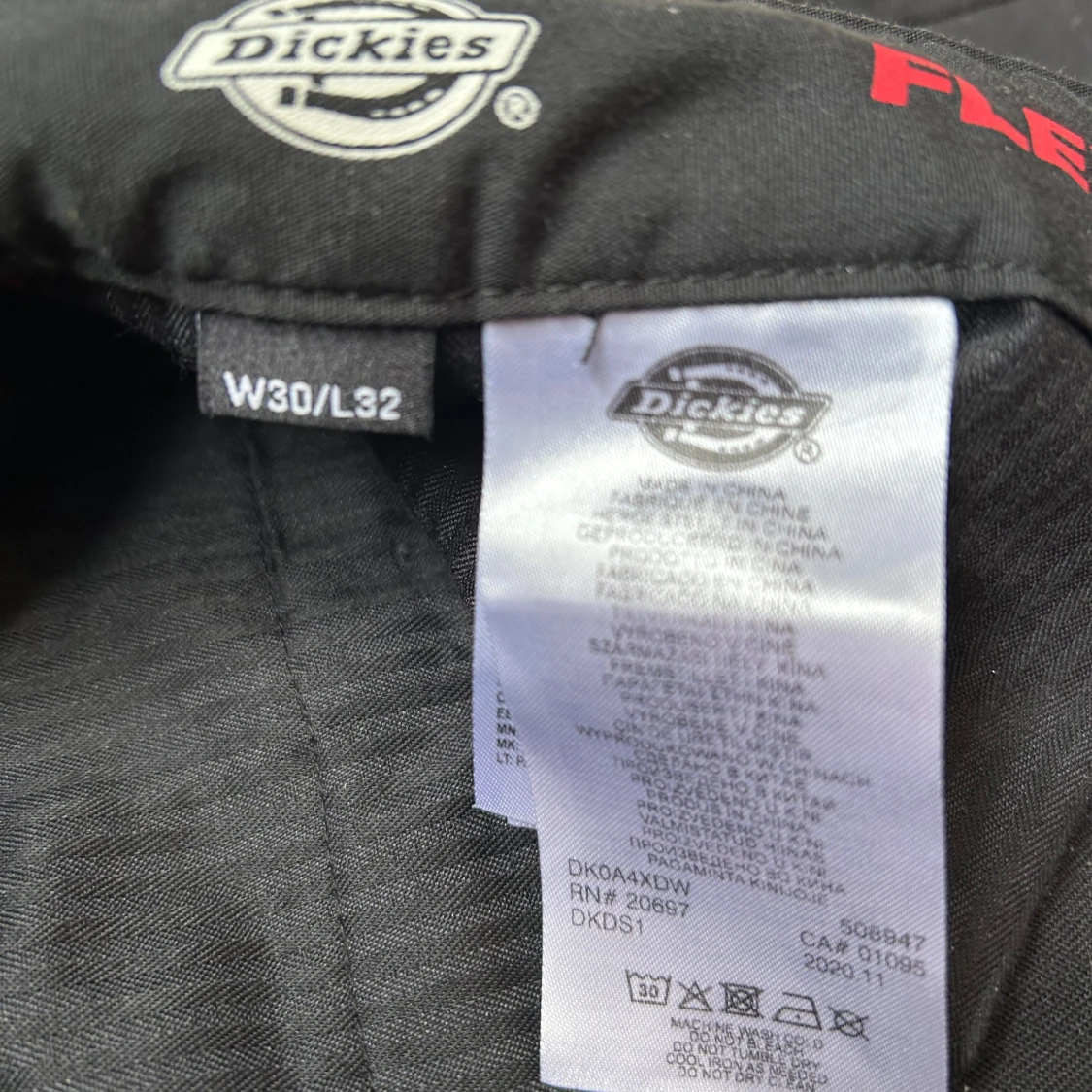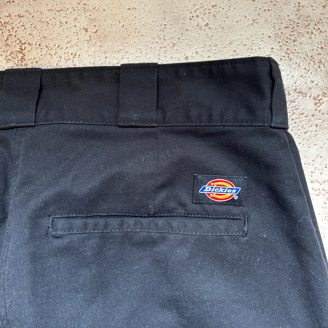 Säljer ett par svarta kostymbyxor från Dickies med klassisk passform och raka ben. Byxorna har dragkedja och knapp framtill samt Dickies-logga ovanför ena bakfickan. Perfekta för en clean och stilren look.