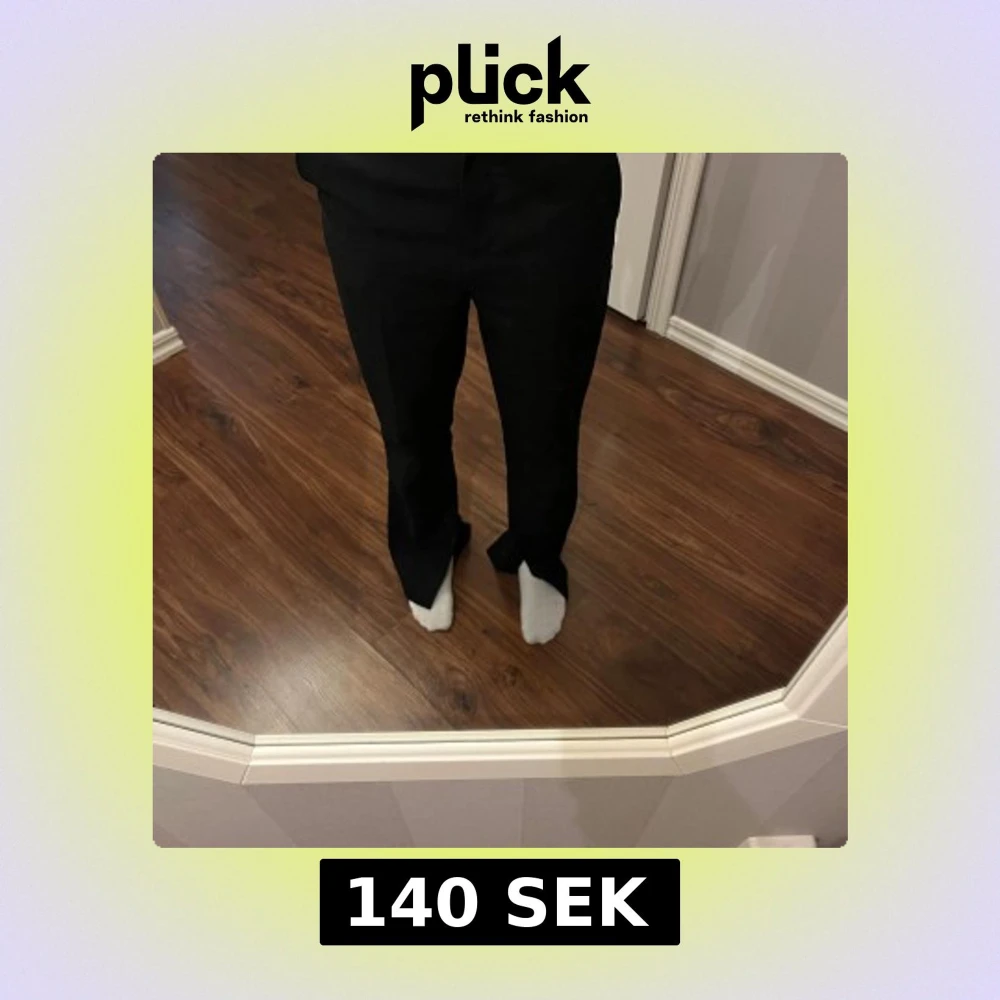 Snygga svarta kostymbyxor från H&M med rak passform och hög midja. Byxorna har klassisk look med vida ben och är tillverkade i ett mjukt tyg som känns bekvämt hela dagen. Perfekta för en clean och stilren outfit.