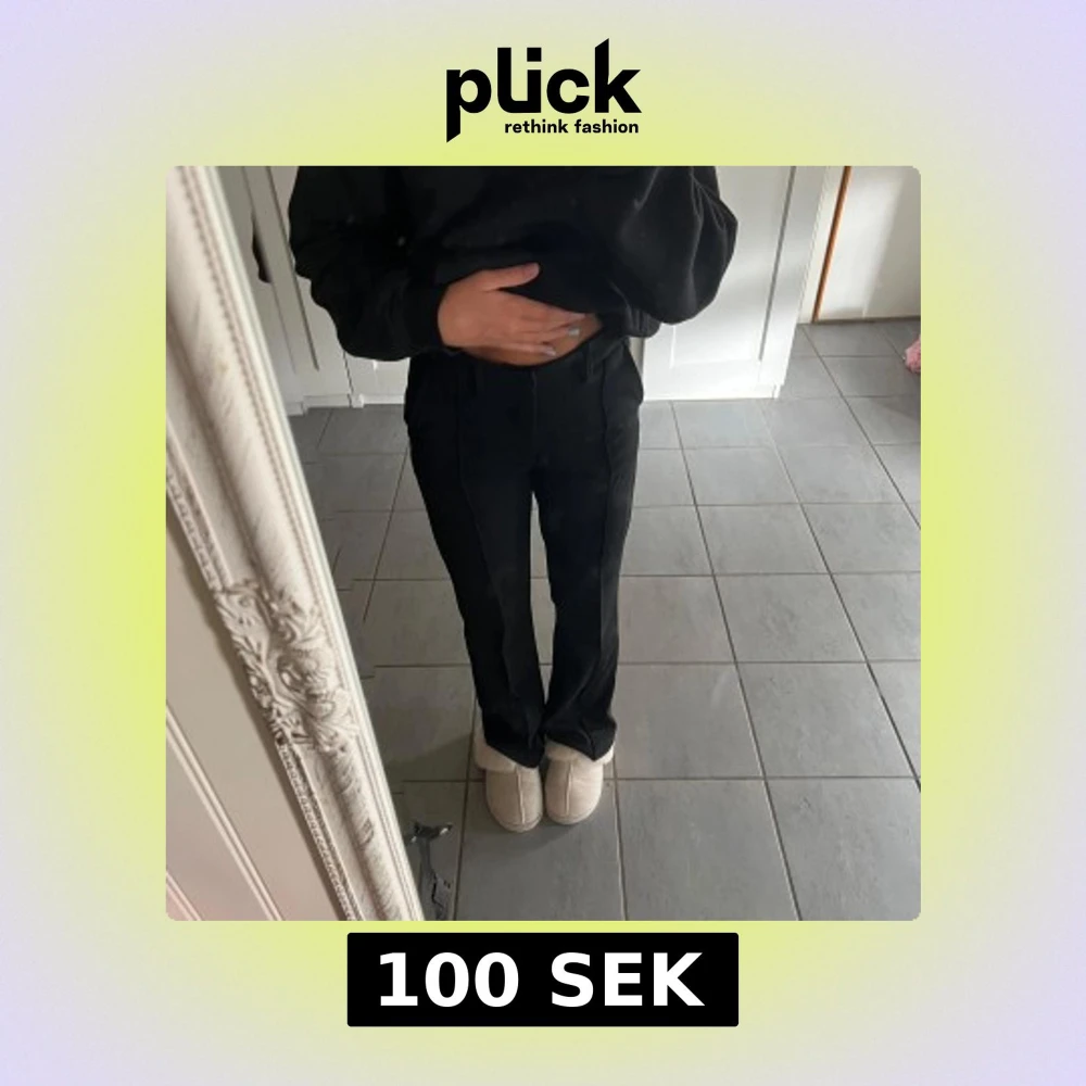 Svarta kostymbyxor med raka ben och markerade pressveck. Byxorna har hög midja och klassisk passform i storlek 164. Aldrig använda💕