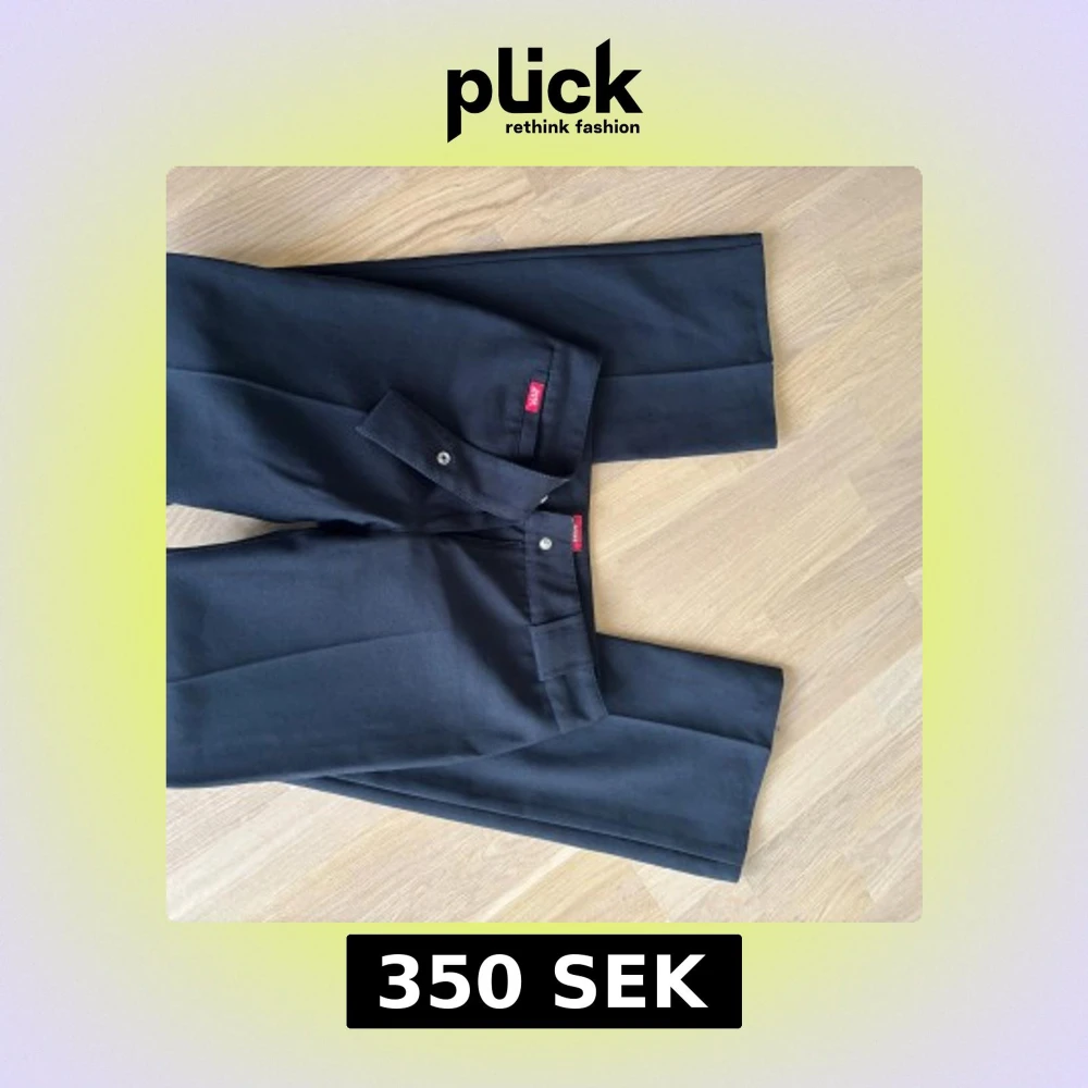 Säljer ett par svarta kostymbyxor från Miss Sixty i storlek 26. Byxorna är Lågmidjade med klassisk passform och stängs med knapp och dragkedja. Perfekta för en clean och stilren look. Materialet känns mjukt som kostymbyxor