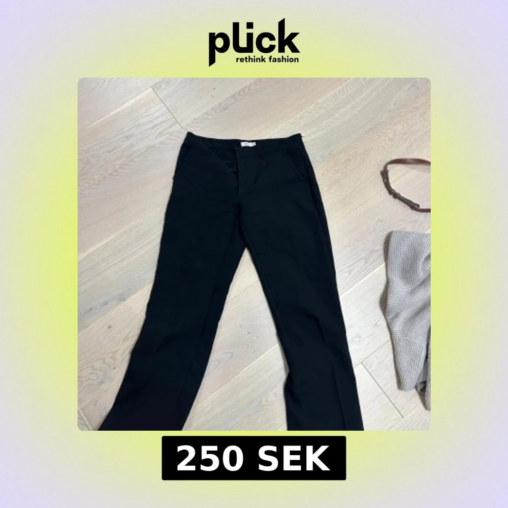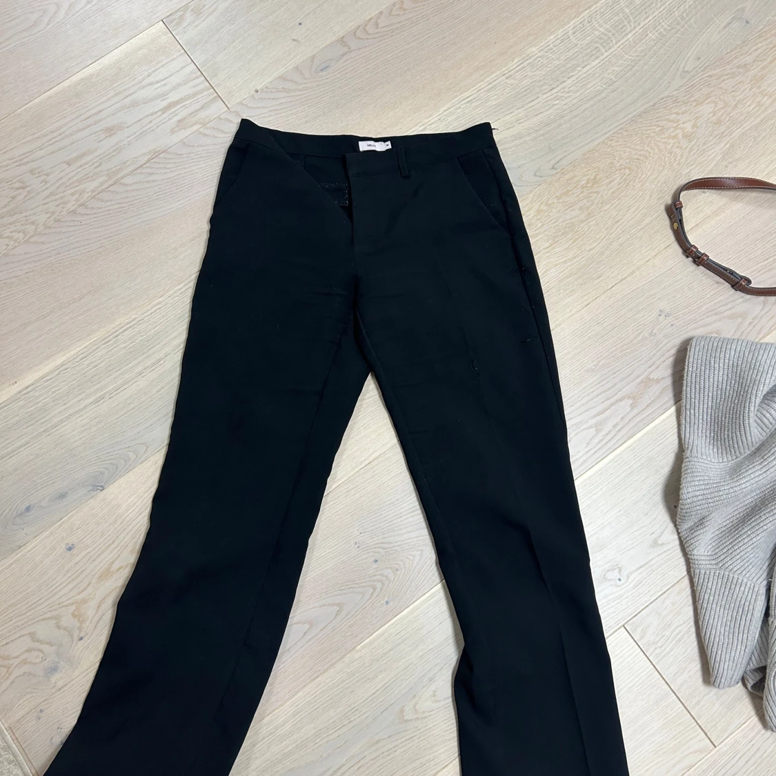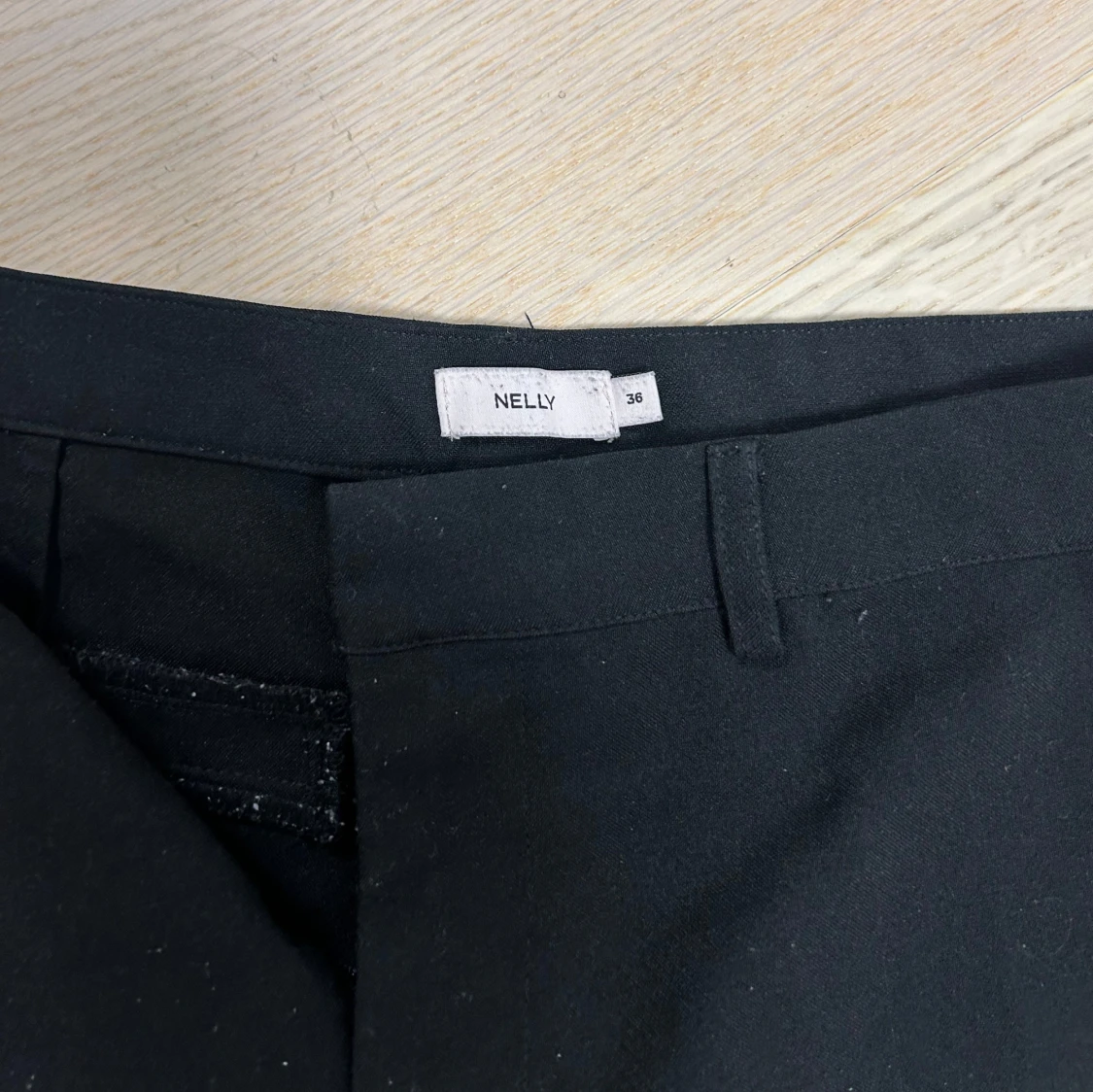 Säljer ett par stilrena svarta kostymbyxor från Nelly i storlek 36. De har en klassisk design med rak passform och låg midja.