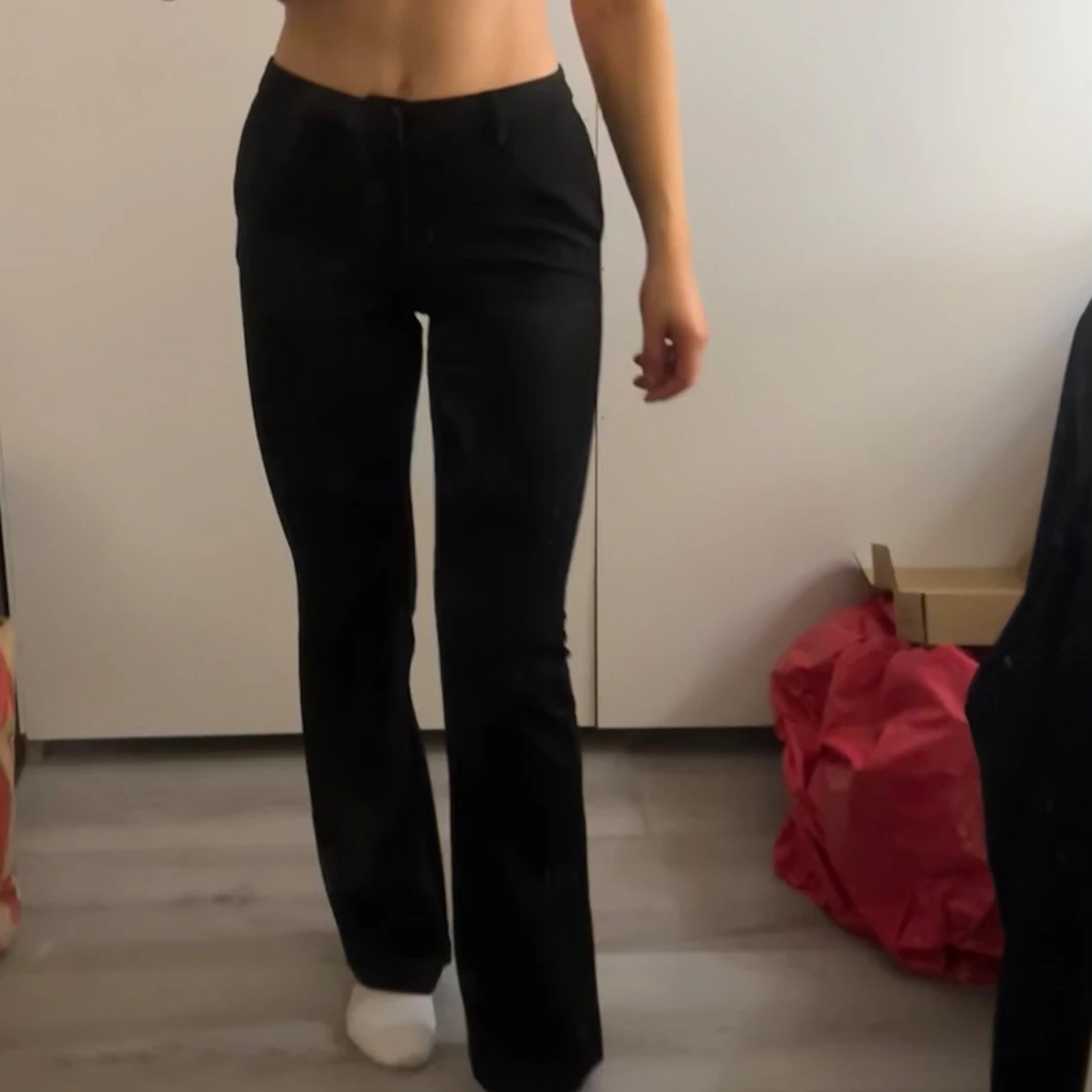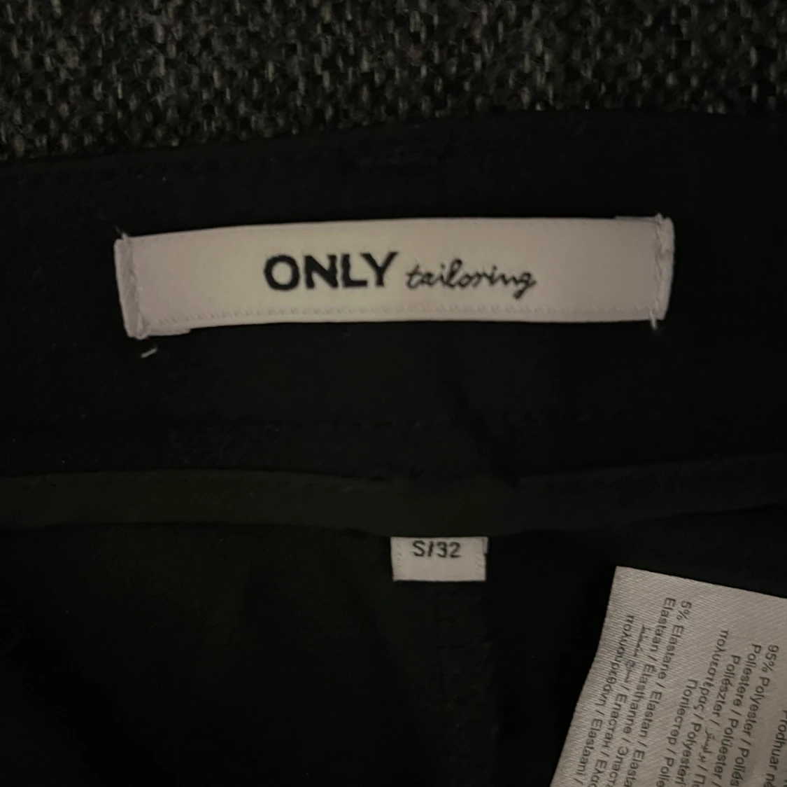 Snygga svarta kostymbyxor från ONLY, modell Tailoring, med medelhög/hög midja och bootcut! Helt oanvända då de var lite för korta för mig. Storlek S, längd 32.
