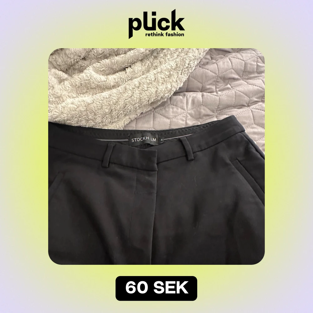 Säljer ett par svarta kostymbyxor från Stockh LM. De har en klassisk design med hög midja och raka ben.