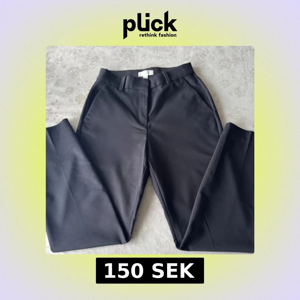 Eleganta svarta kostymbyxor från H&M med en klassisk passform. Byxorna har en stilren design med hällor för bälte och diskreta bakfickor. Perfekta för en stilren look.