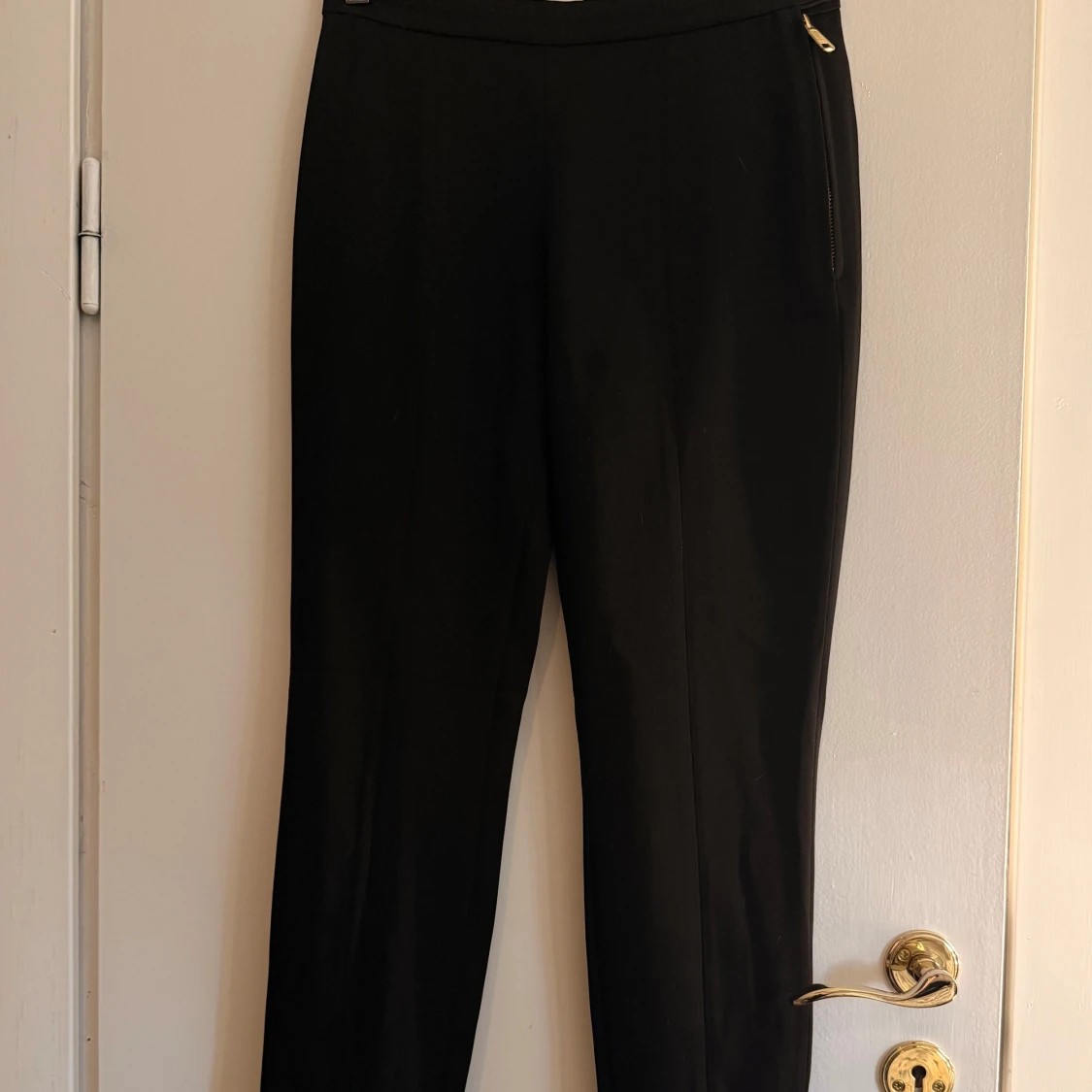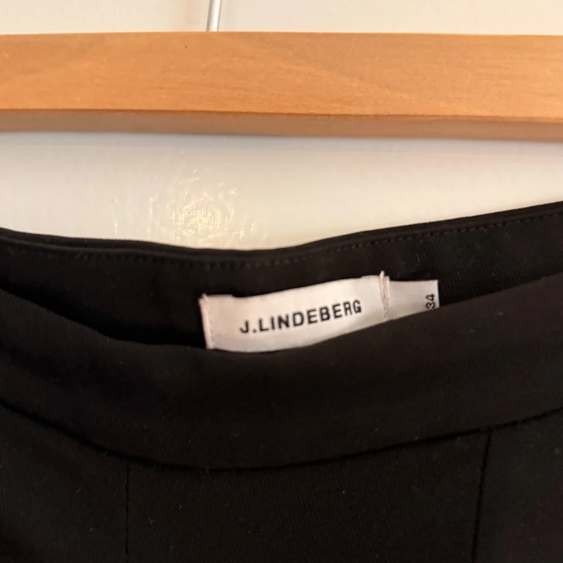 Svarta kostymbyxor från J.Lindeberg med smal passform. Byxorna har dragkedjor vid bensluten och en diskret dragkedja i sidan. Snygg minimalistisk look, perfekta till sneakers eller boots. Stängbar slits nertil