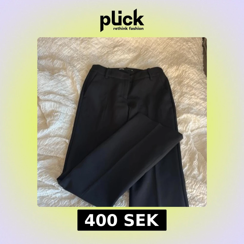 Stilrena svarta kostymbyxor från Bik Bok med klassisk bootcut-passform. Byxorna har hällor för bälte, pressveck och två bakfickor. Perfekta för en clean och dressad look. Materialet är slätt och känns bekvämt mot huden.