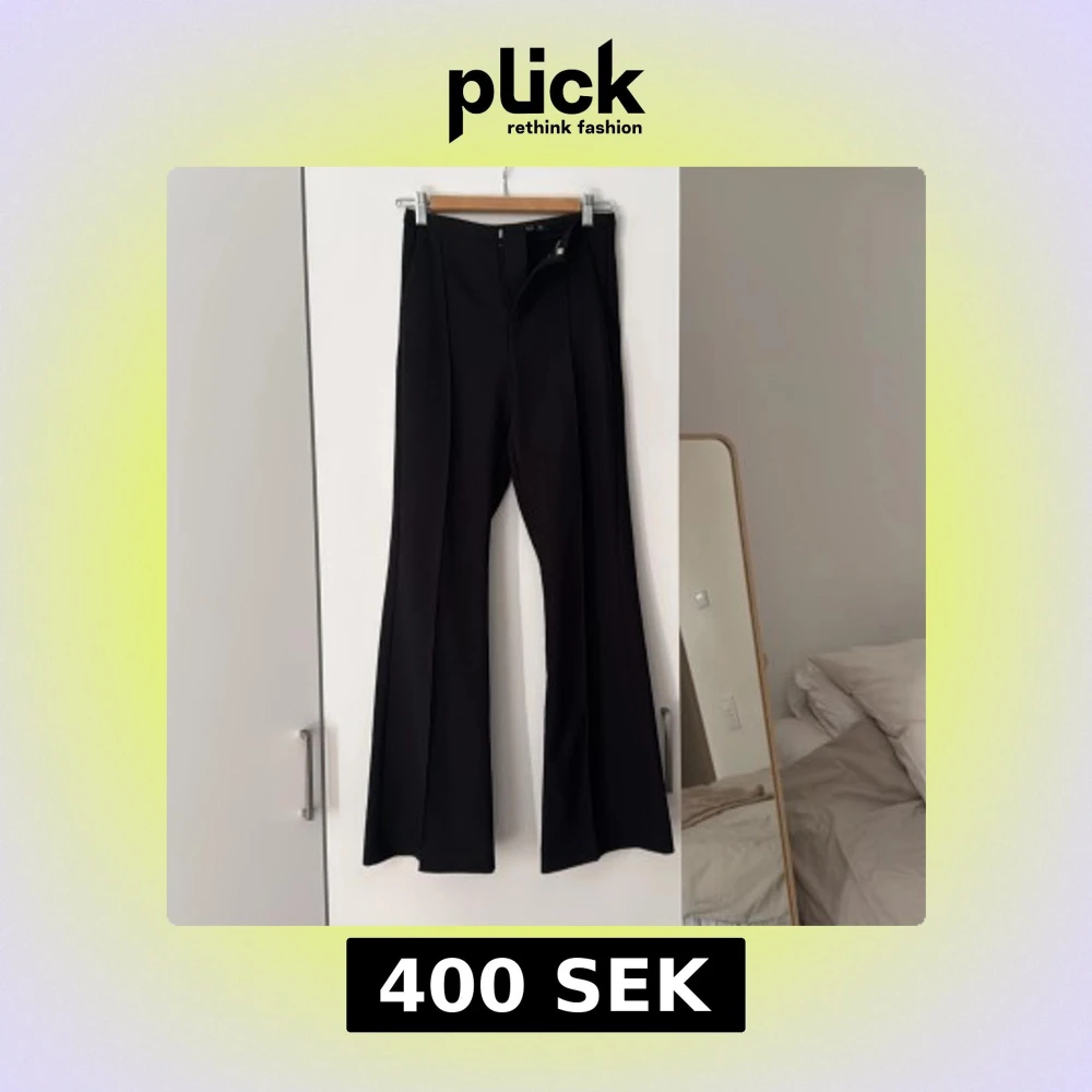 Snygga svarta kostymbyxor med bootcut-stil. De har en normal hög midja och en dragkedja framtill. Perfekta för en stilren look. Från gina tricot i storlek xs