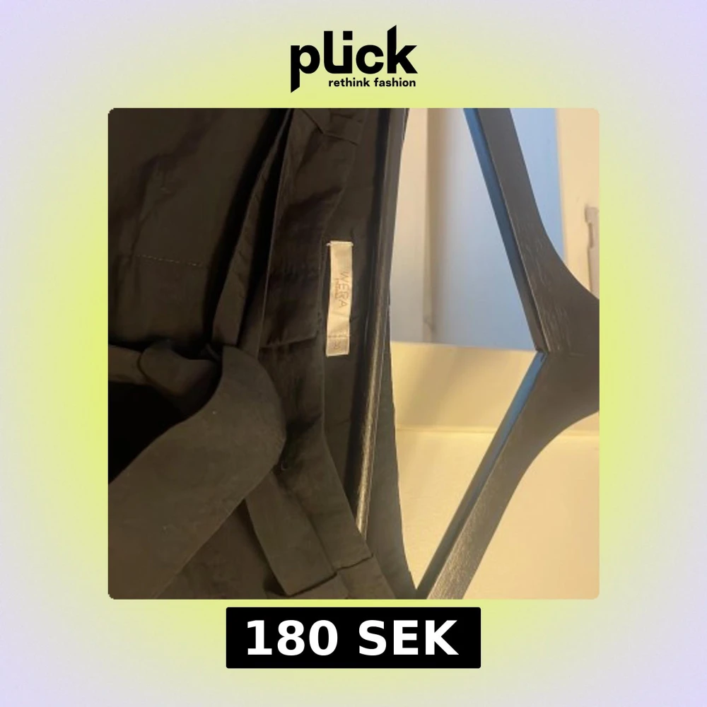 Svarta kostymbyxor från Wera i storlek 38. Byxorna har ett snyggt knytband i midjan och raka ben. De är tillverkade i ett mjukt tyg som känns skönt mot huden och har en klassisk look med fickor både fram och bak.
