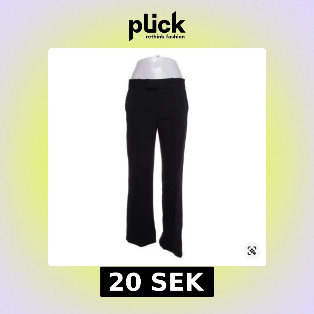 Stilrena svarta kostymbyxor med låg midja och klassiska pressveck. Byxorna har hällor för bälte och diskreta bakfickor. Perfekta för en clean och dressad look. Byxorna är uppsydda/upplagda av tidigare ägare. Byxorna köptes secondhand och passade tyvärr inte mig, men hoppas de får ett bra hem hos någon annan 🥰