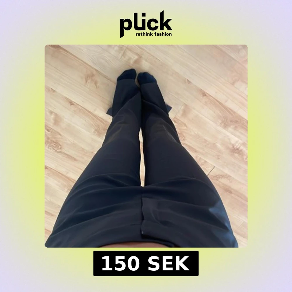 Säljer ett par svarta kostymbyxor med klassisk rak passform och hög midja. Byxorna har diskreta fickor bak och bälteshällor i midjan. Perfekta för en stilren och enkel look. Även slits vid fötterna🥰