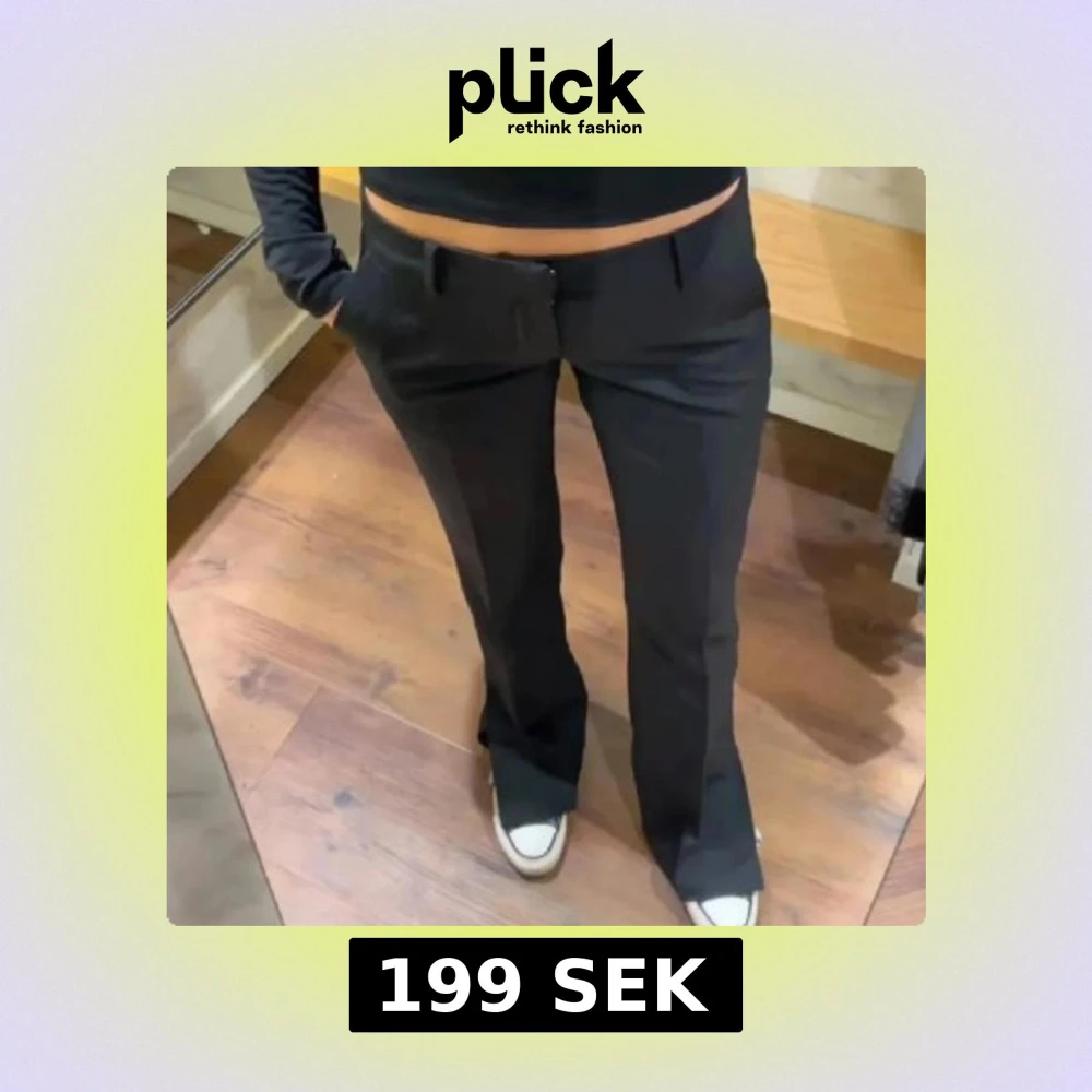 Säljer dessa fina lågmidjade svarta kostymbyxor i storlek 34. Säljer pågrund av att jag inte använder längre💗Lånad bild!