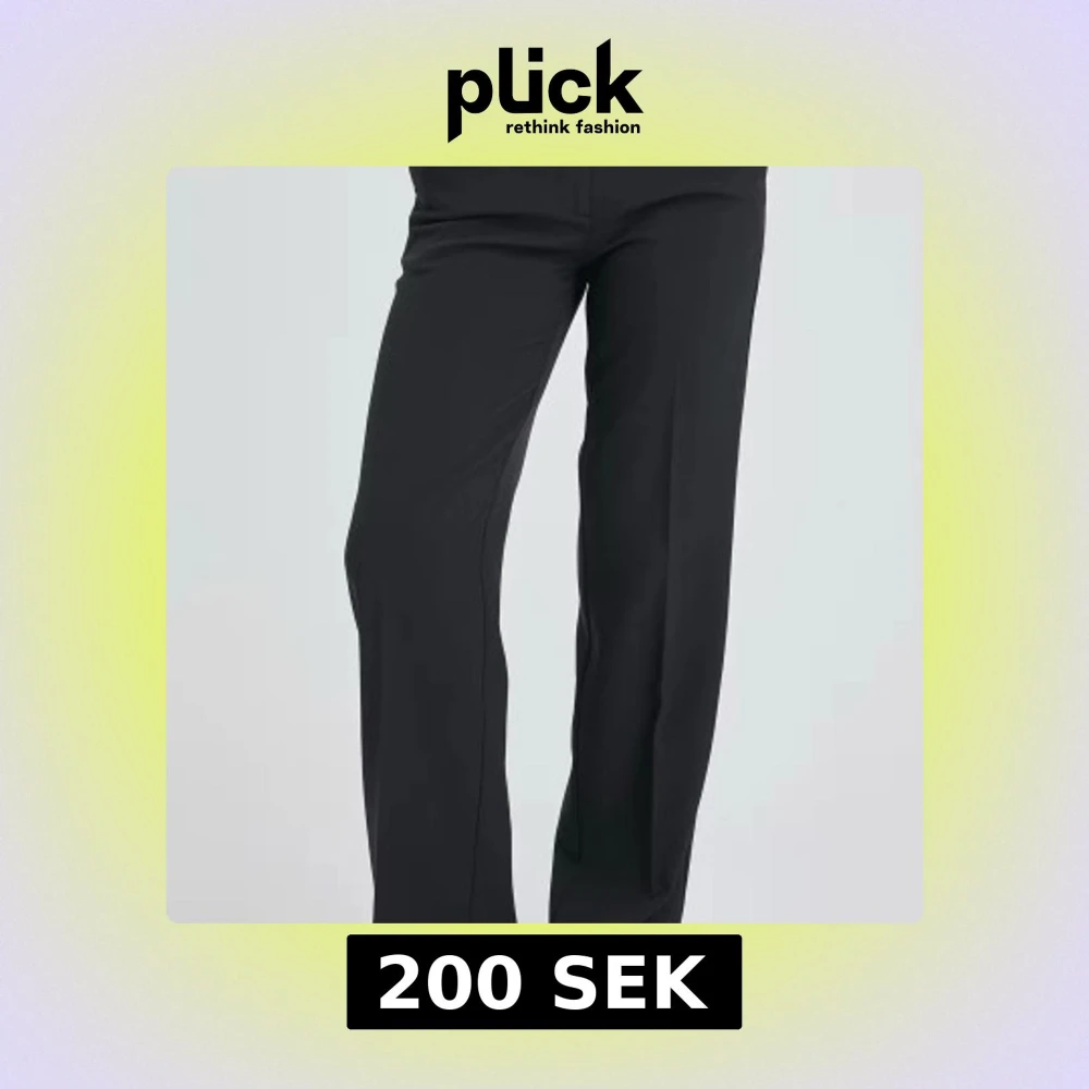 Snygga svarta kostymbyxor med rak och lite loose passform. Byxorna har klassiska fickor fram, bälteshällor och stängs med dragkedja och knapp. Perfekta för en clean och stilren look, passar till både sneakers och boots. Nypris 500🙌
