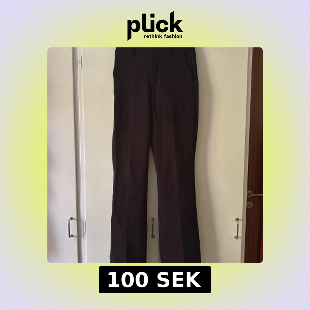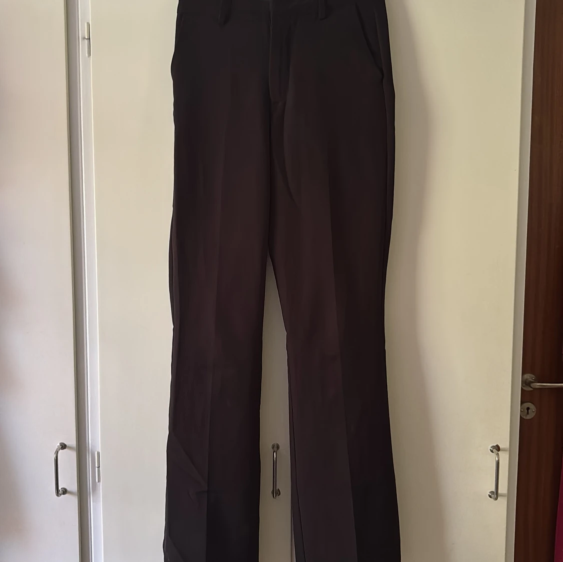 Snygga svarta kostymbyxor med hög midja, klassisk rak passform och pressveck från bikbok. Modellen heter Vilma. Materialet känns mjukt och följsamt. Använda fåtal gånger. Nypris 499