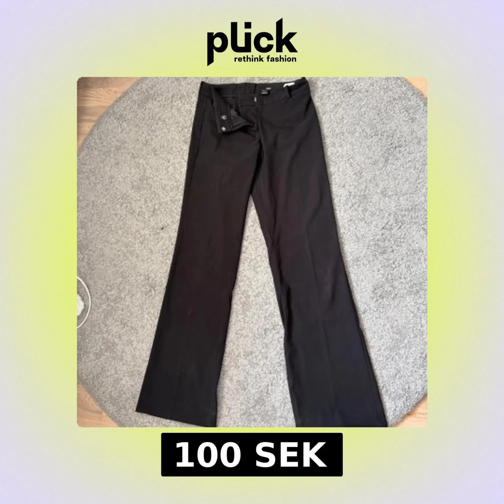 Snygga svarta lågmidjade kostymbyxor med klassisk rak passform från H&M. Byxorna har diskret knapp- och dragkedjestängning. Användes ett antal gånger, men är i mycket bra skick. Pris kan diskuteras.