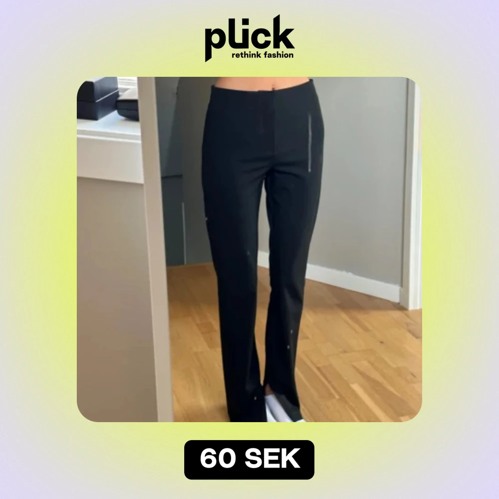 Säljer ett par stilrena svarta kostymbyxor. De är högmidjade och har en snygg bootcut-stil som ger en elegant look. Perfekta för både vardag och fest!