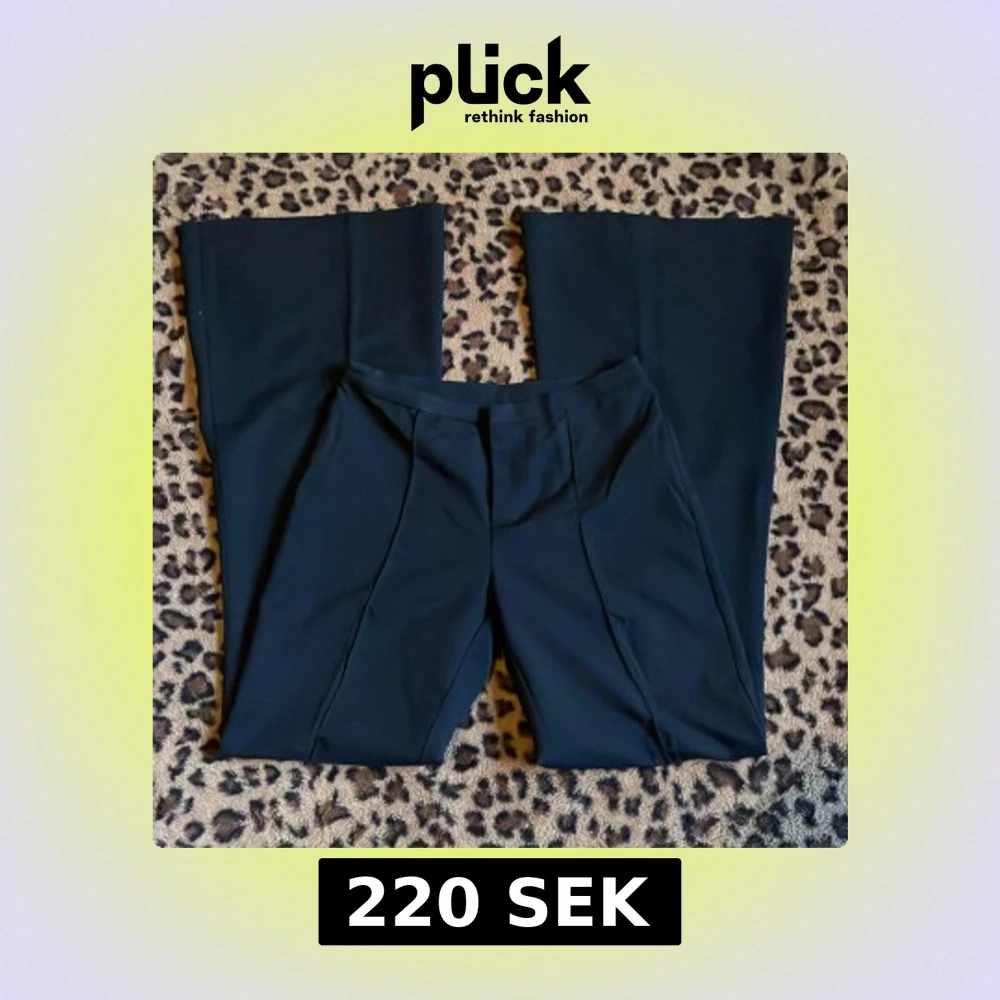 Snygga svarta kostymbyxor med låg midja och bootcut-stil. Perfekta för en stilren look. Byxorna har en elegant passform och är tillverkade i ett mjukt material som ger en bekväm känsla.
